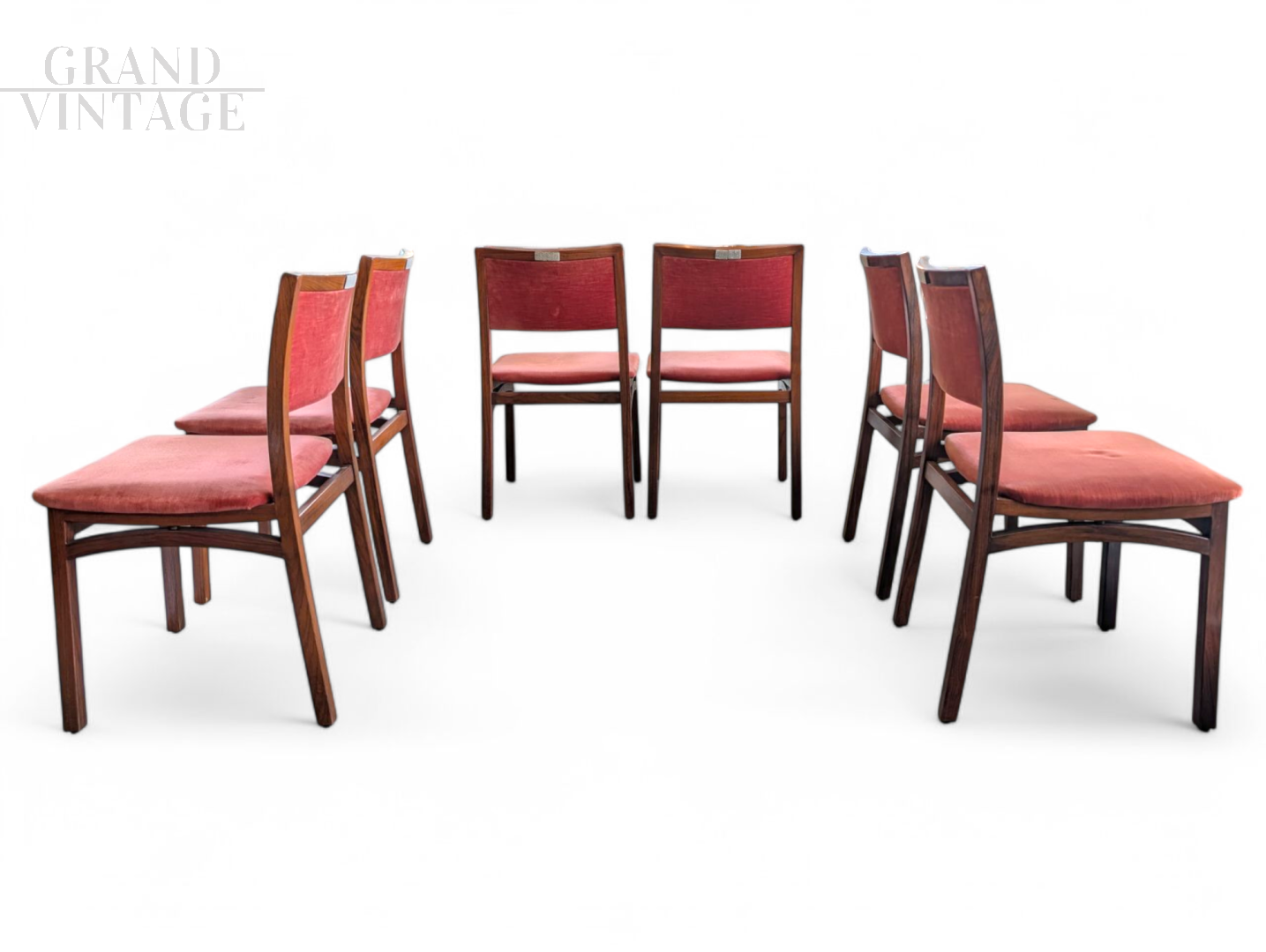 Set di 6 sedie vintage in mogano e velluto rosso, anni '60