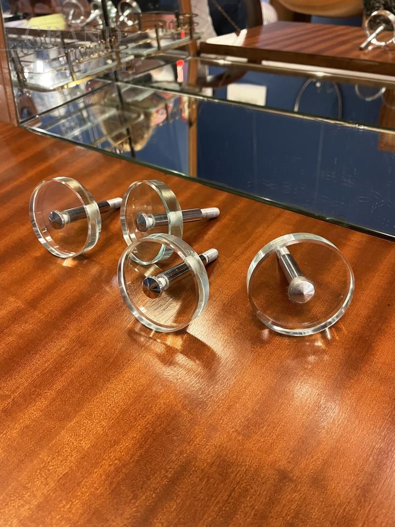 Set di accessori da bagno porta asciugamani da parete in cristallo, utilizzabili anche come attaccapanni appendiabiti da parete, originali e provenienti da una casa costruita negli anni '70.