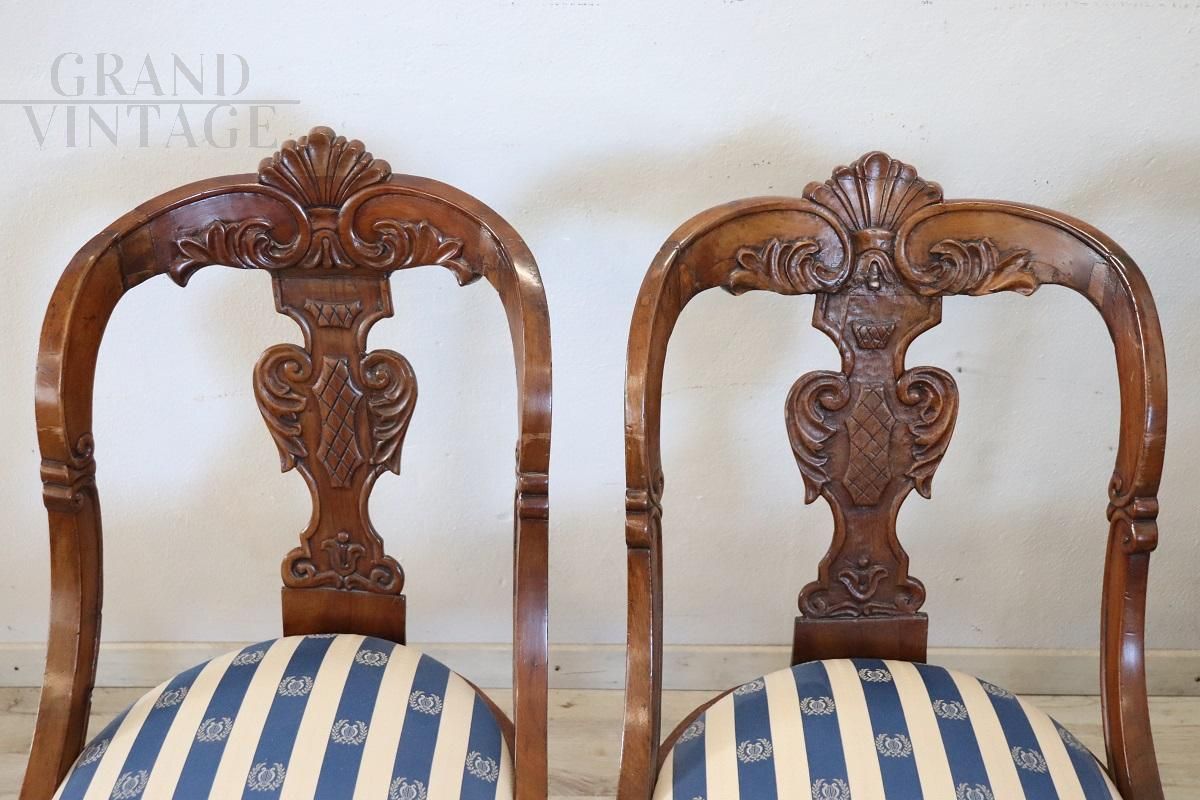 Set di quattro sedie a gondola antiche in noce intagliato