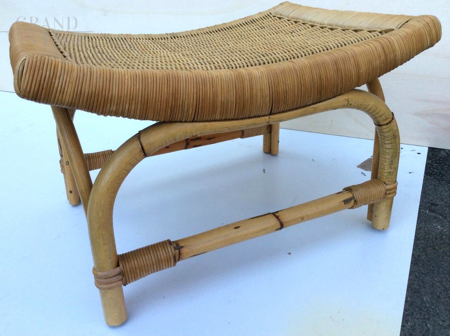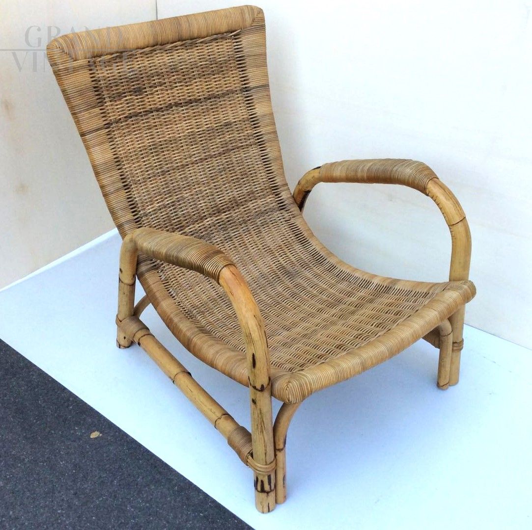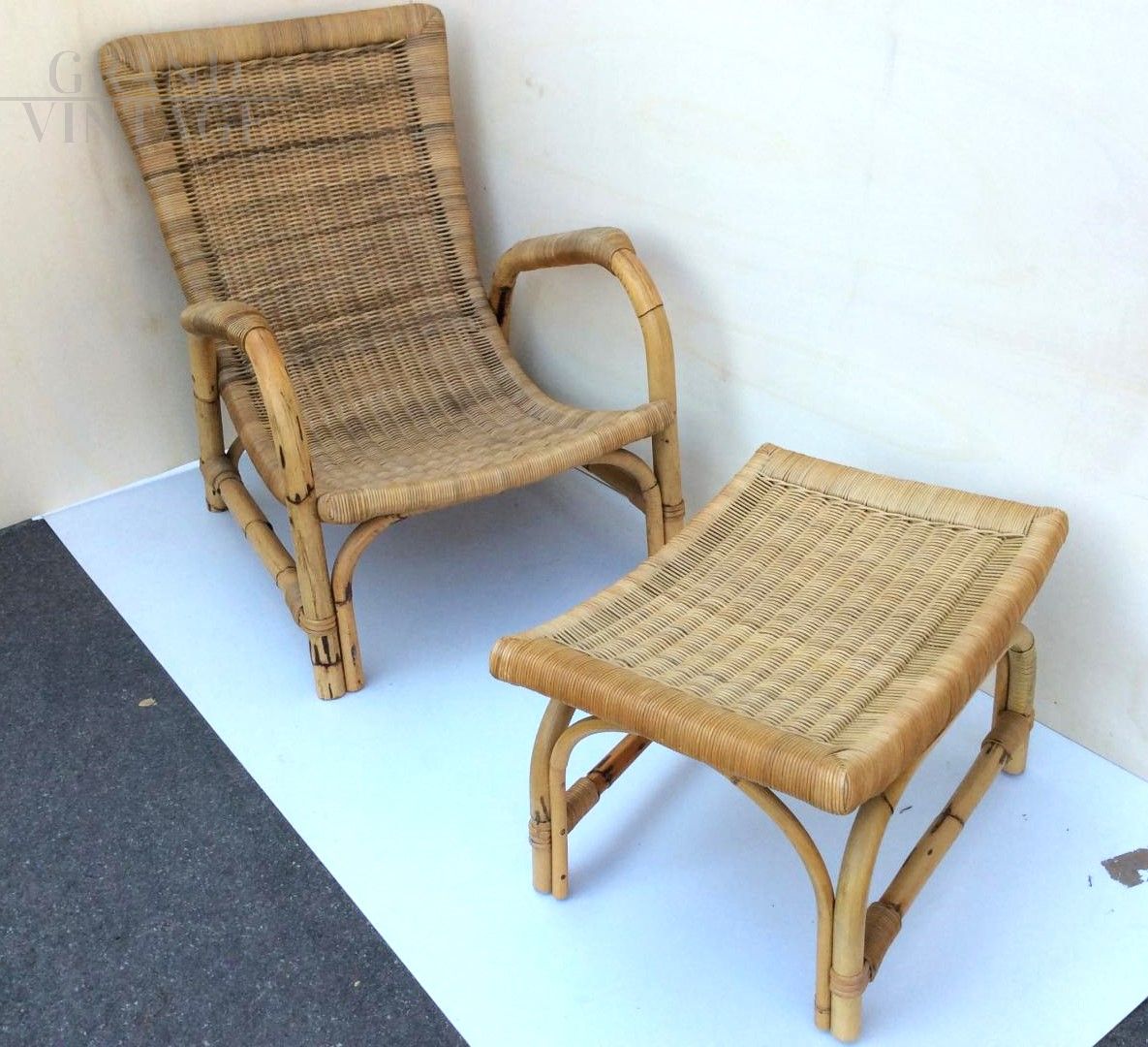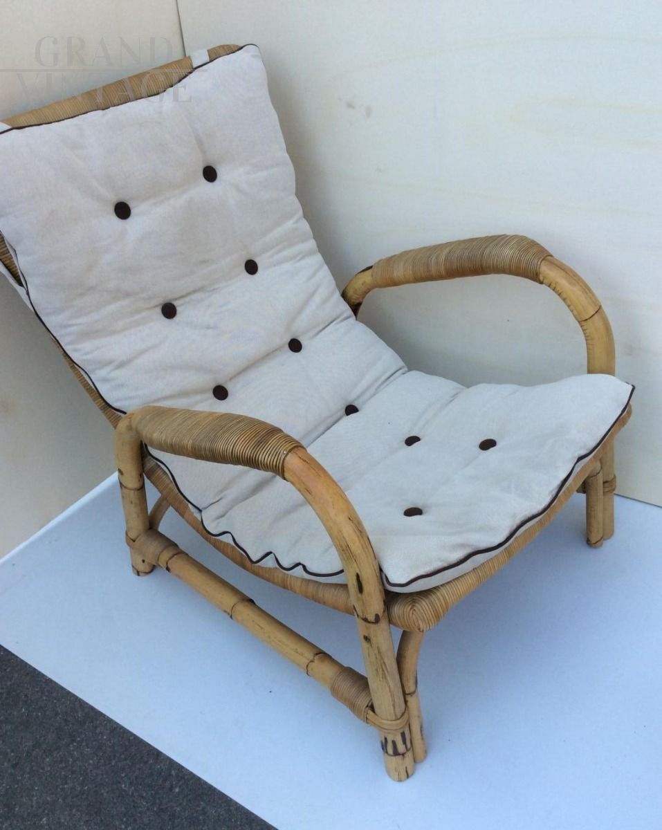 Set poltrona e sgabello in bamboo, anni '60