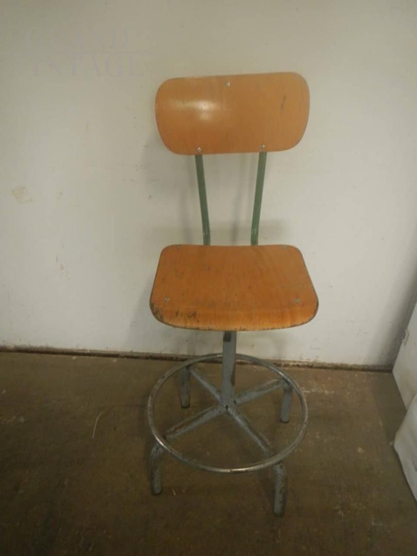 Sgabello alto in legno e metallo con schienale e poggiapiedi, anni '50