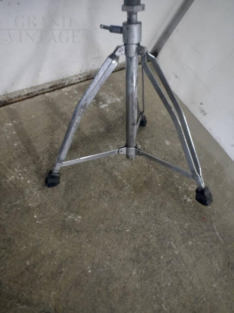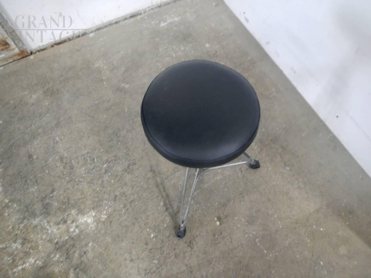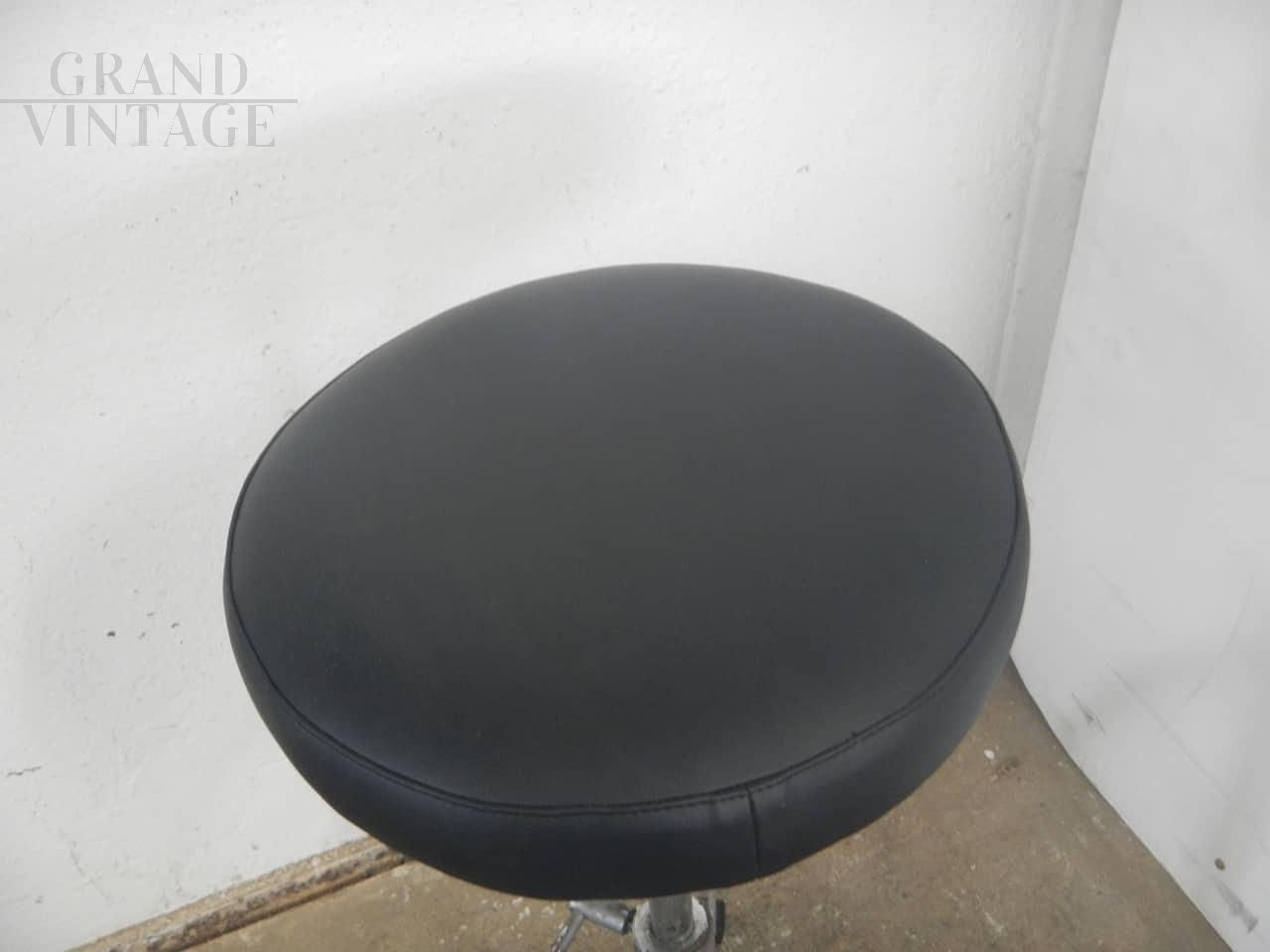 Sgabello da batteria vintage in metallo e similpelle, con struttura pieghevole. Il rivestimento in similpelle della sella è nuovo. In buone condizioni, la seduta è regolabile in altezza da cm 54 a cm 80.