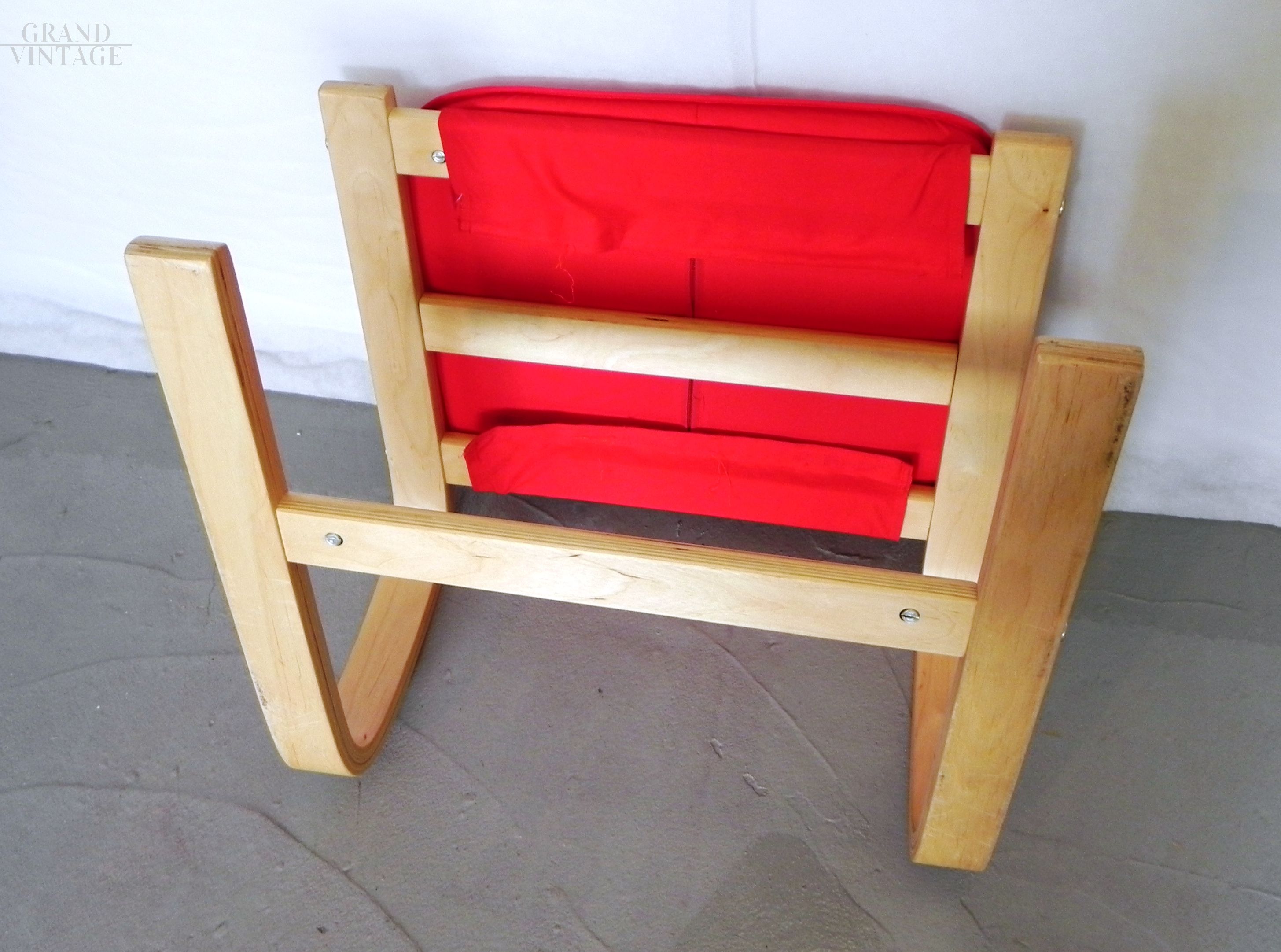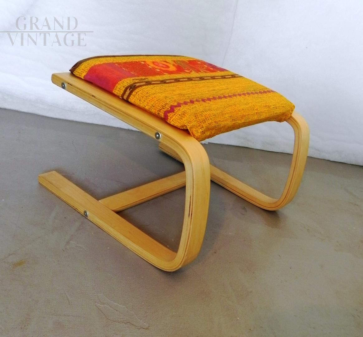 Sgabello vintage in legno curvato con imbottitura