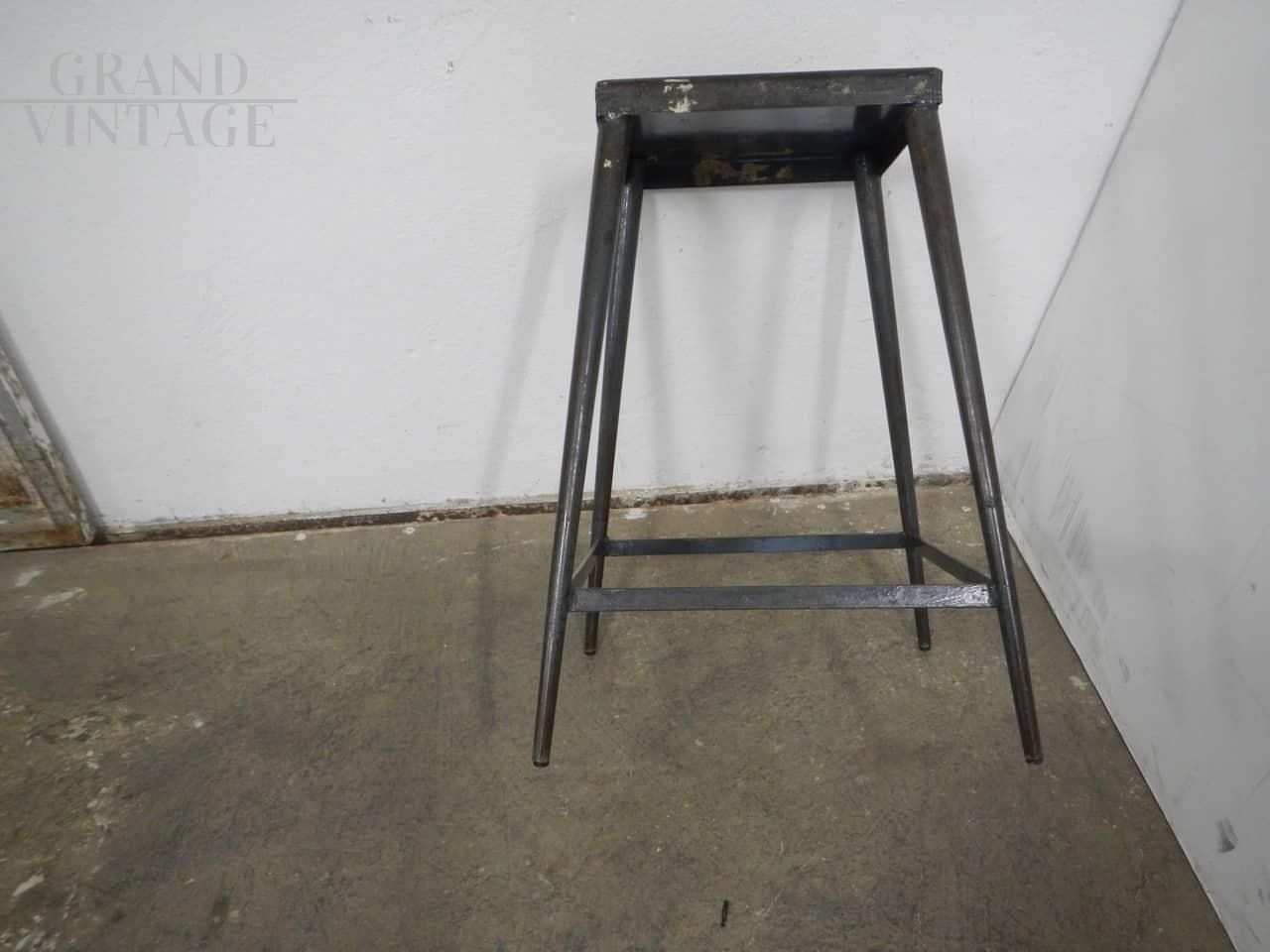 Sgabello industriale quadrato in ferro con poggiapiedi