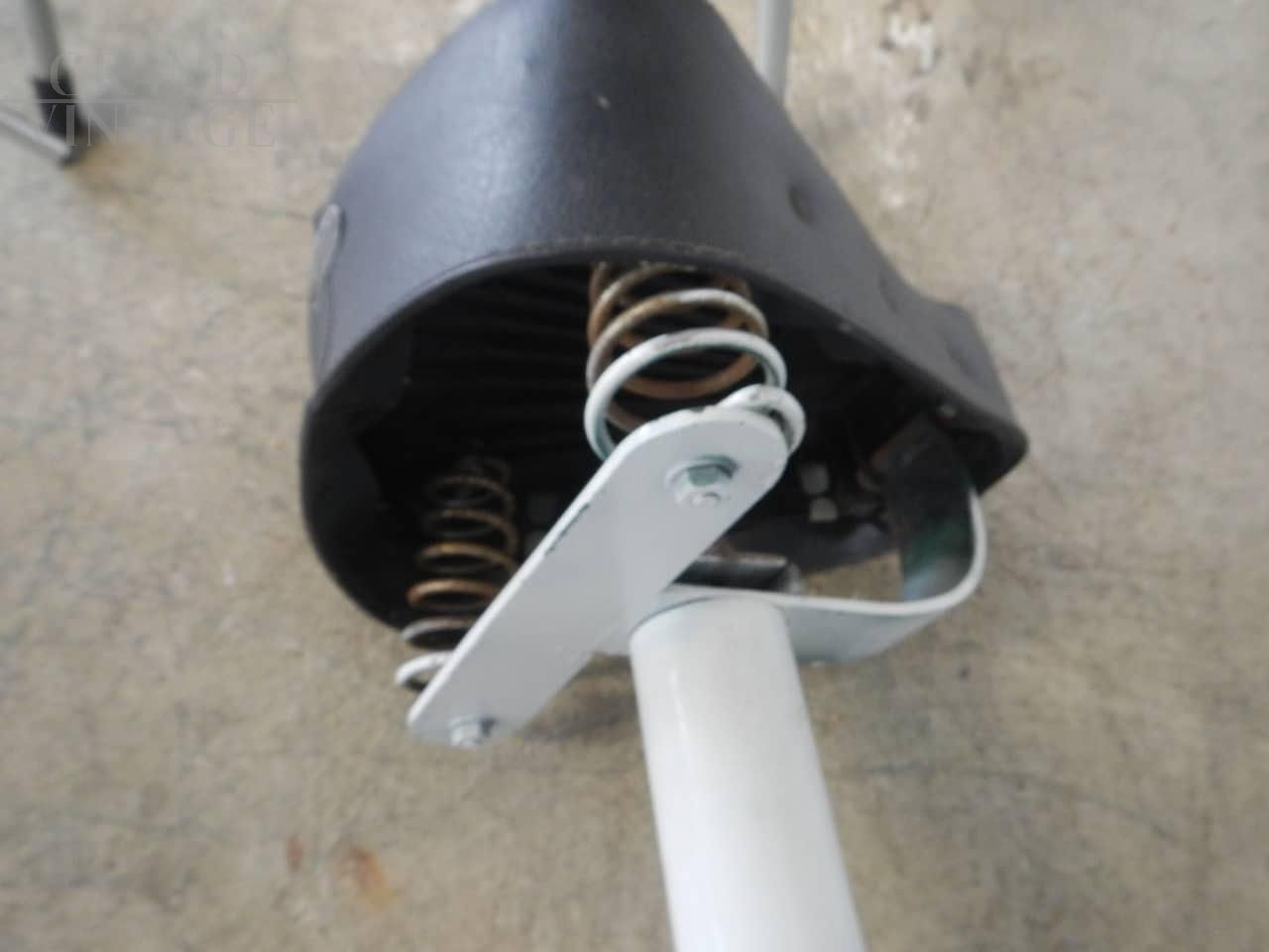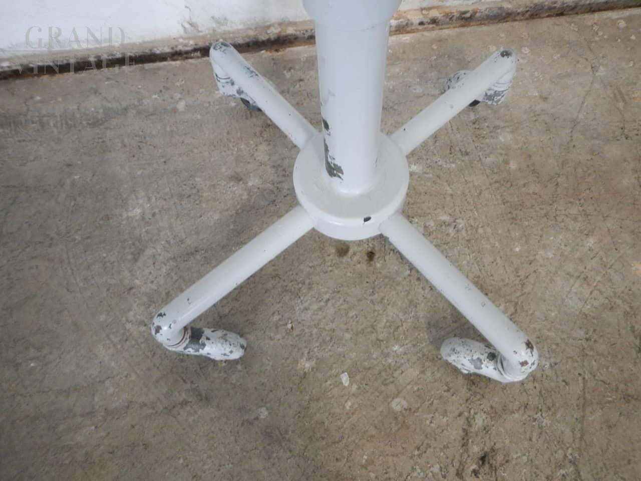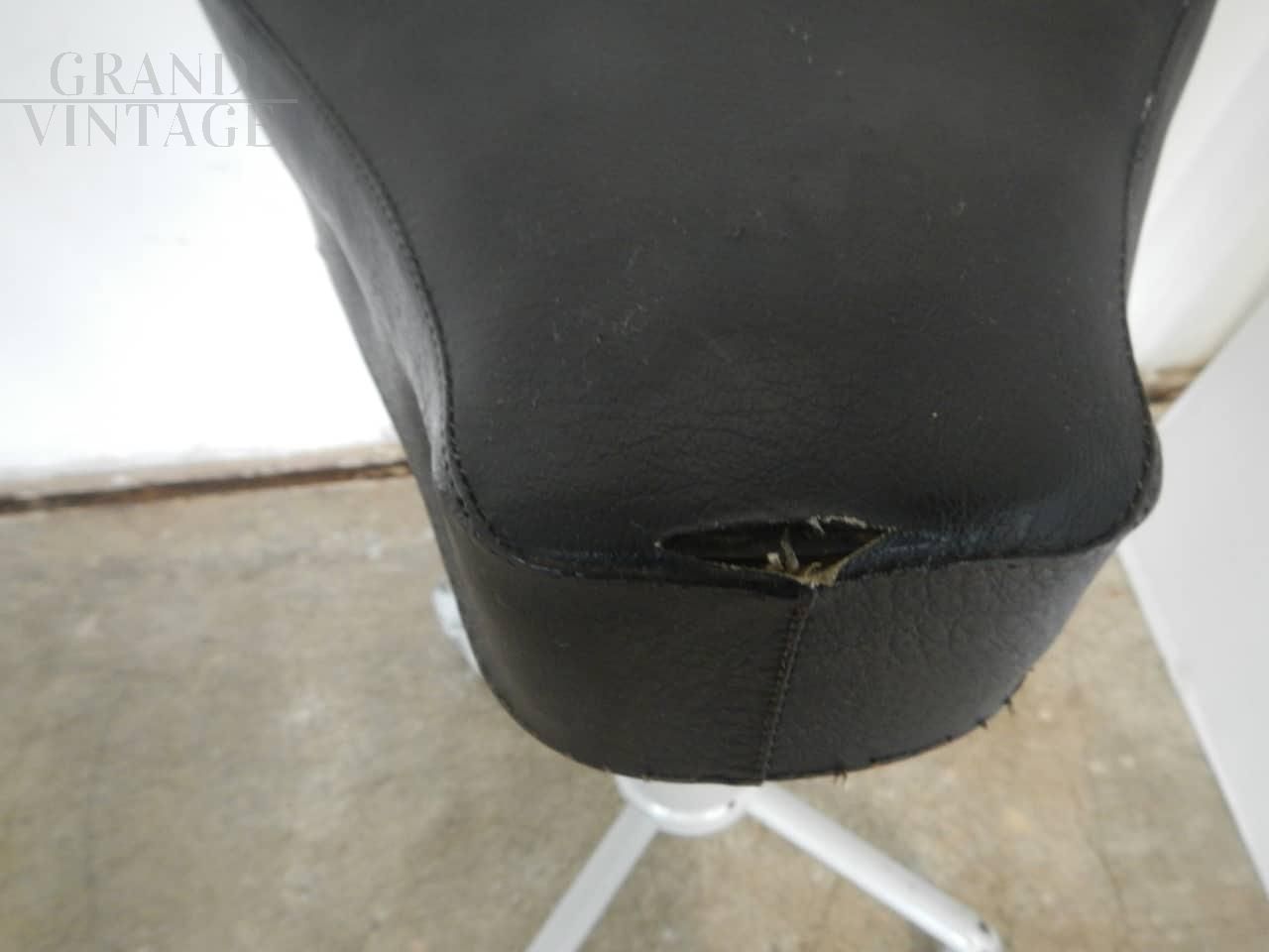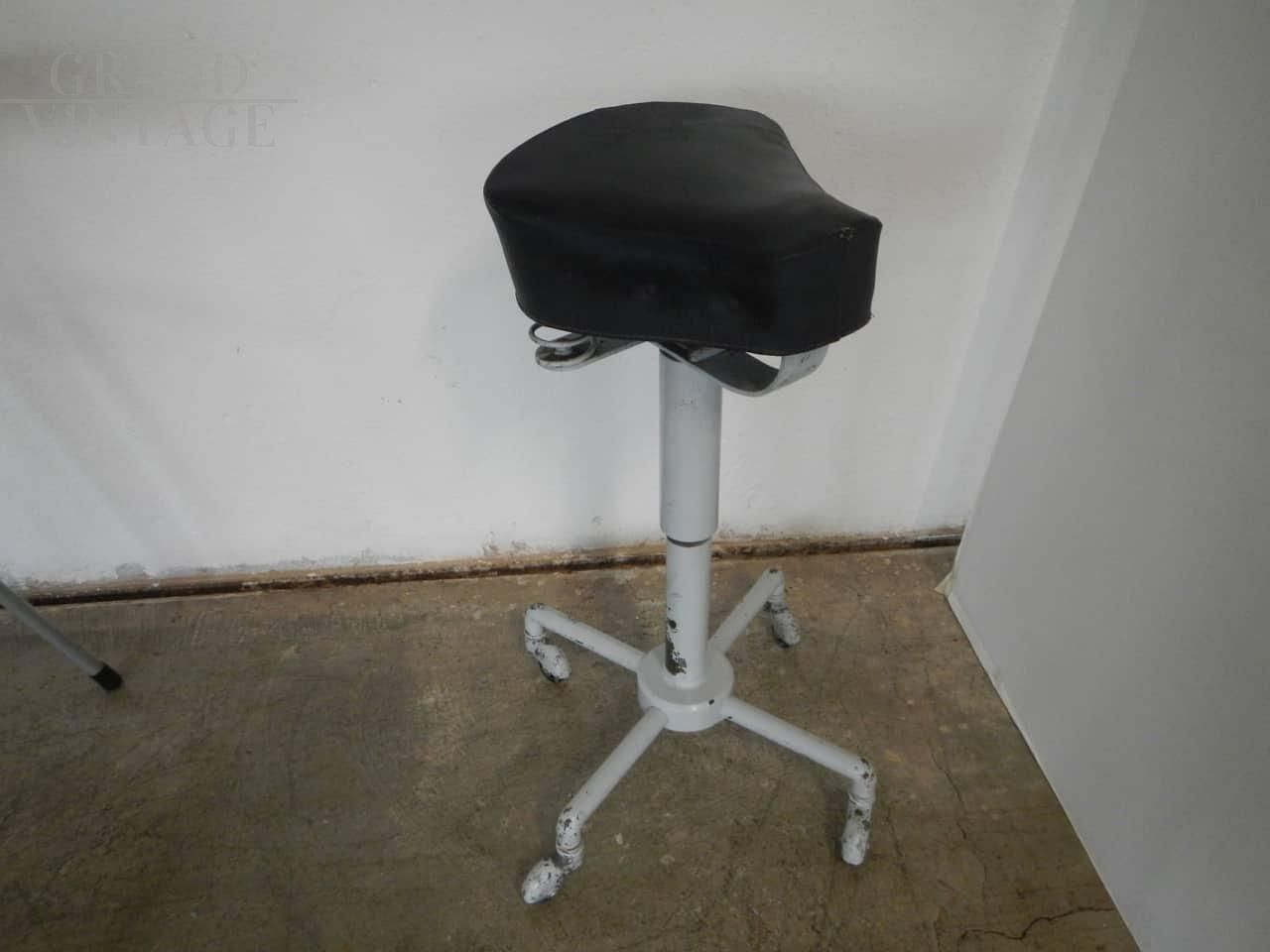 Sgabello con 4 ruote e altezza regolabile, con seduta sella Giuliari, assemblaggio originale, funzionante.