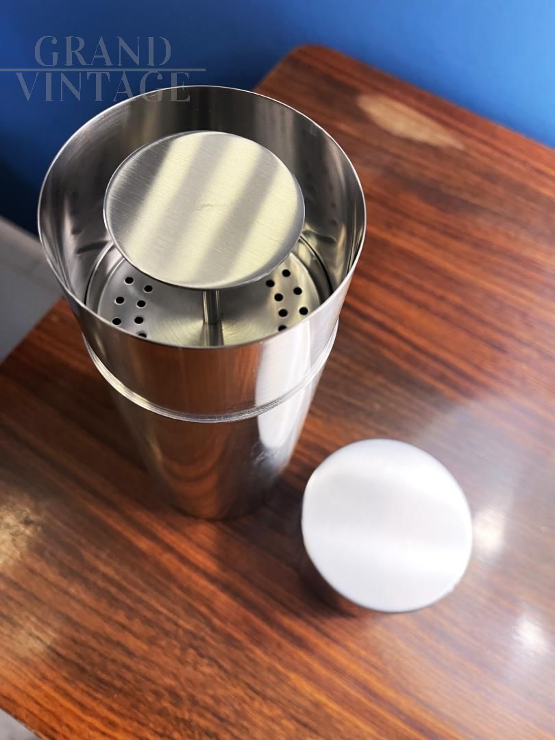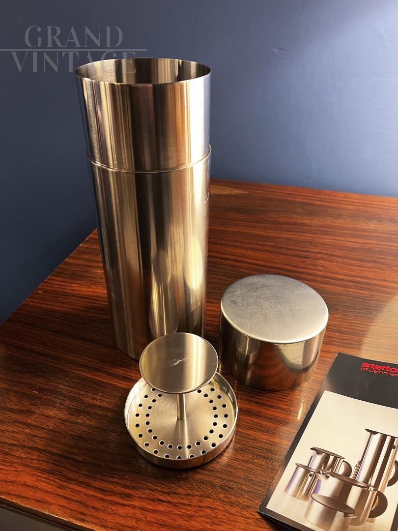 Elegante shaker di design danese di Arne Jacobsen per Stelton in acciaio inox, proveniente da fondo di magazzino, mai usato.