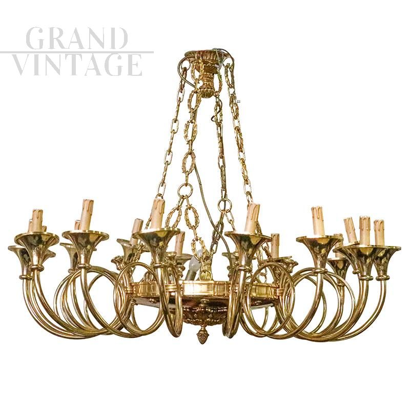 Sontuoso lampadario in bronzo dorato con 19 luci
