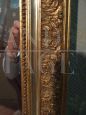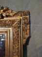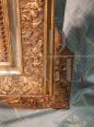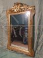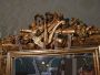 Specchiera antica dorata in foglia oro, con specchio al mercurio. La cimasa riccamente decorata raffigura un intreccio di strumenti musicali e motivi floreali, la cornice è anch'essa finemente decorata con foglie d'acanto. Lombarda, fine XIX secolo.