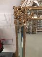 Specchiera in legno dorato con vetro molato e motivi floreali ai quattro lati, applicazione foglia oro, stile antico.