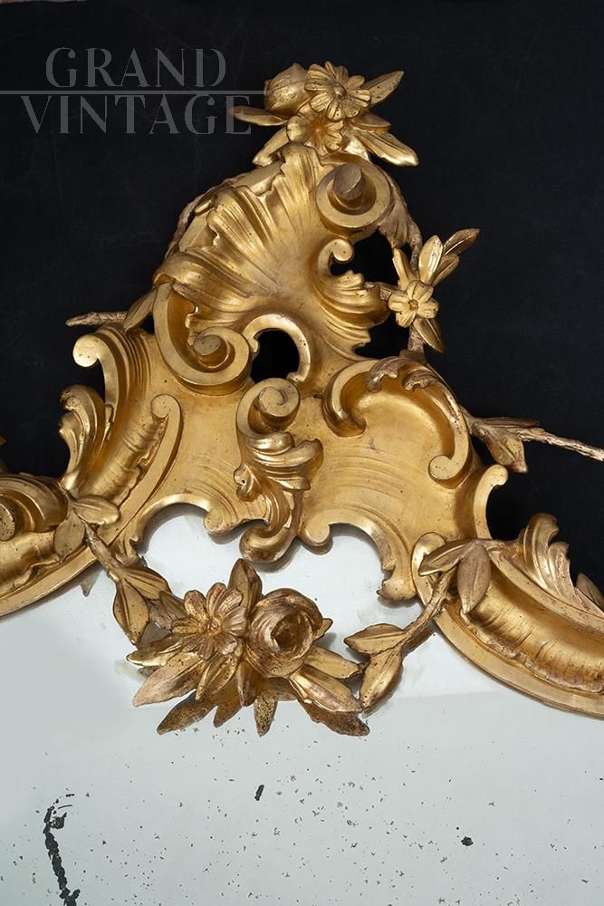 Specchiera antica Luigi Filippo napoletana in legno dorato e intagliato