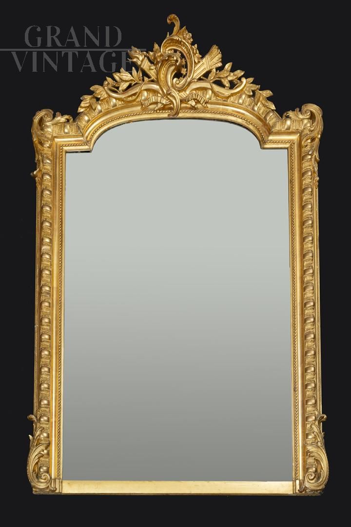 Specchiera antica Napoleone III in legno dorato e intagliato, Francia XIX secolo