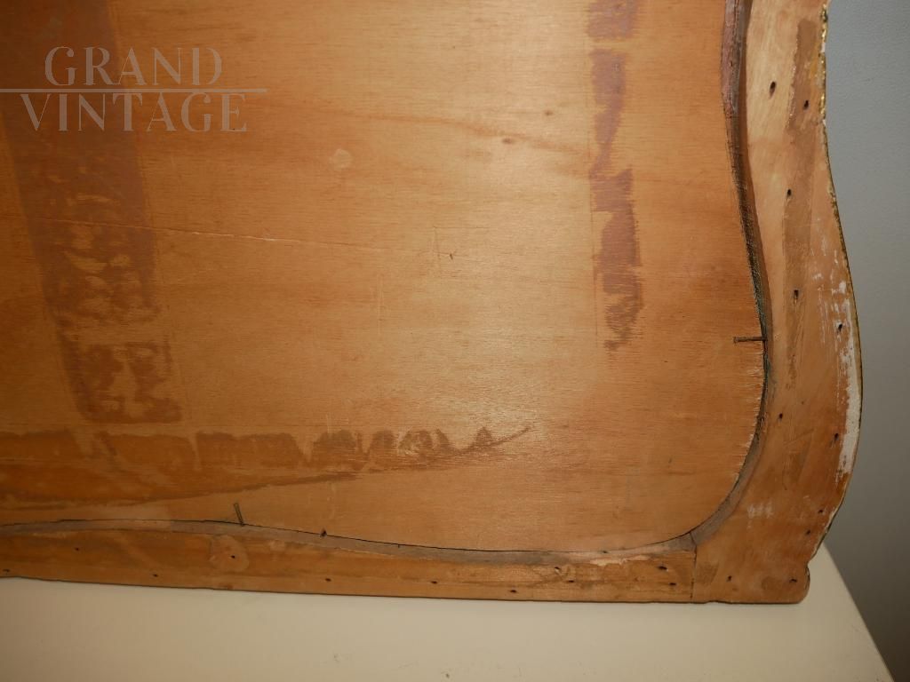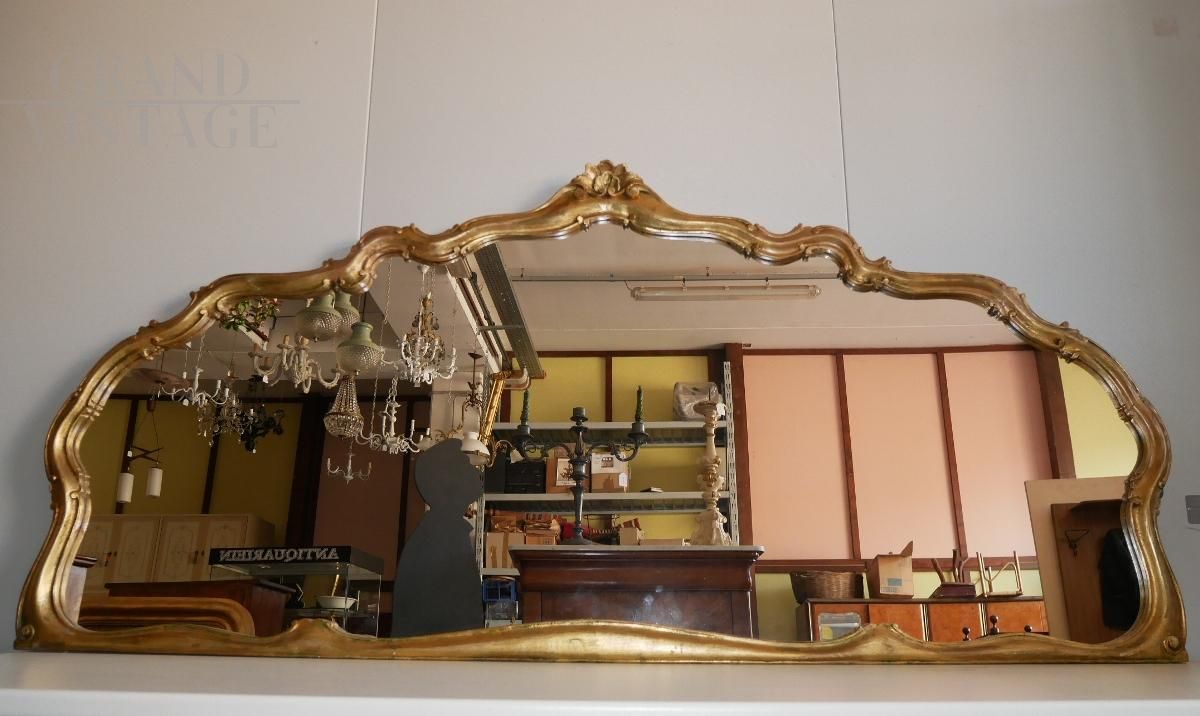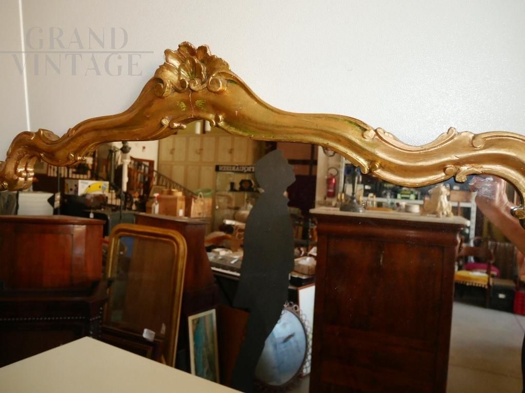 Grande specchiera vintage da comò vintage, sagomata, scolpita e dorata con la tecnica dell'oro matto, Italia anni '50. In ottime condizioni, lo specchio all'interno è nuovo.