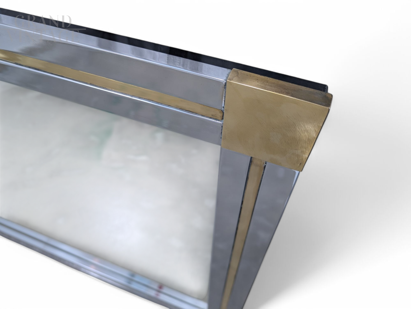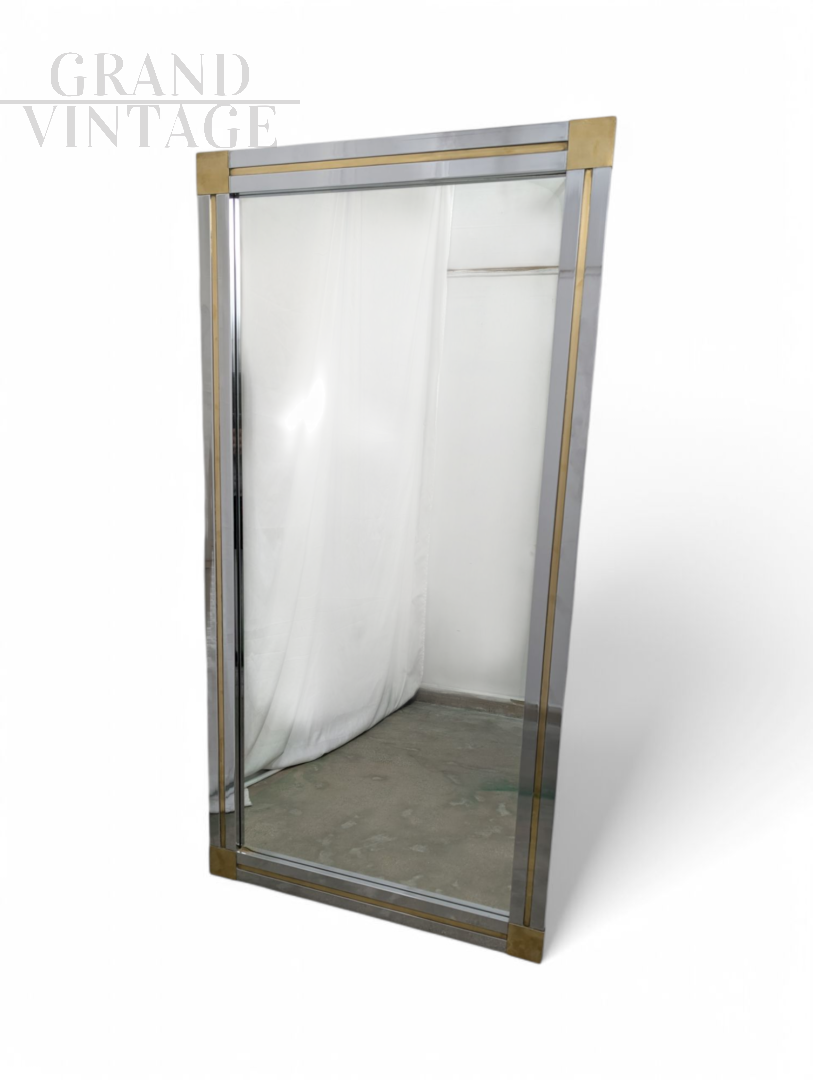 Specchio a figura intera in acciaio cromato e ottone, anni '70