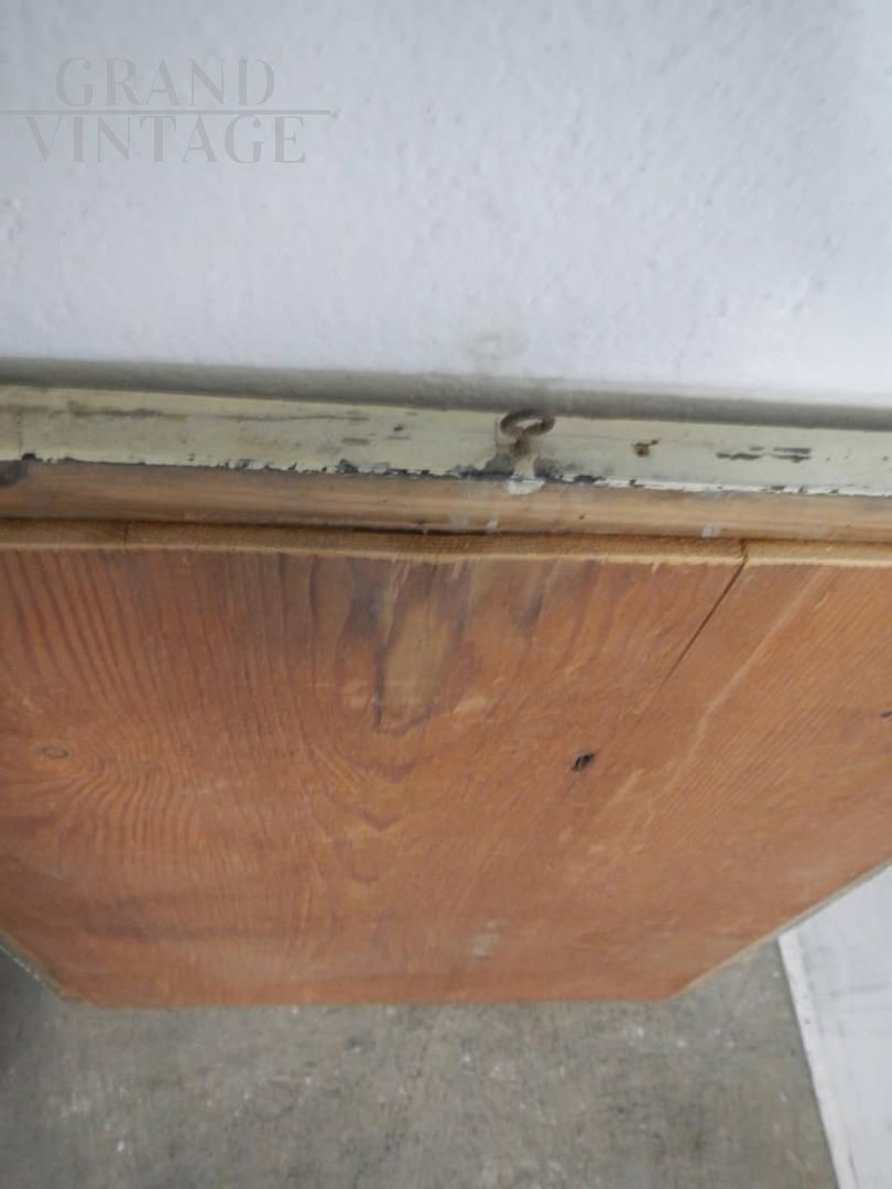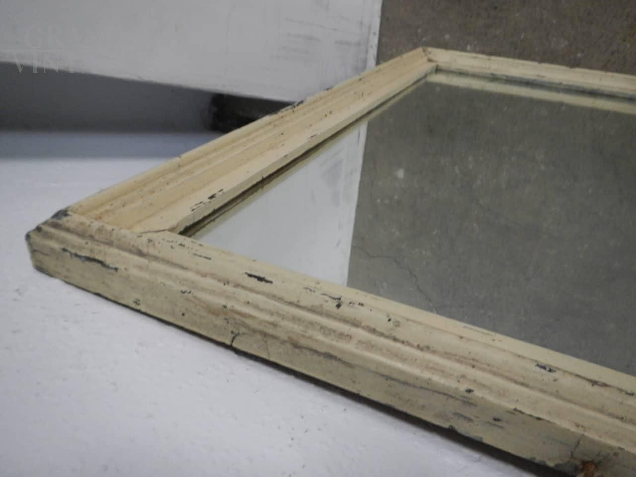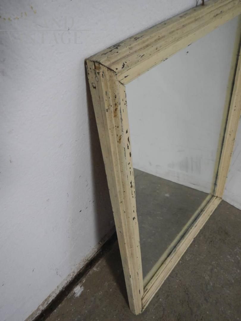 Specchio da parete vintage anni '50 con cornice in abete laccato in colore crema, con gancio originale per appenderlo. In buone condizioni.