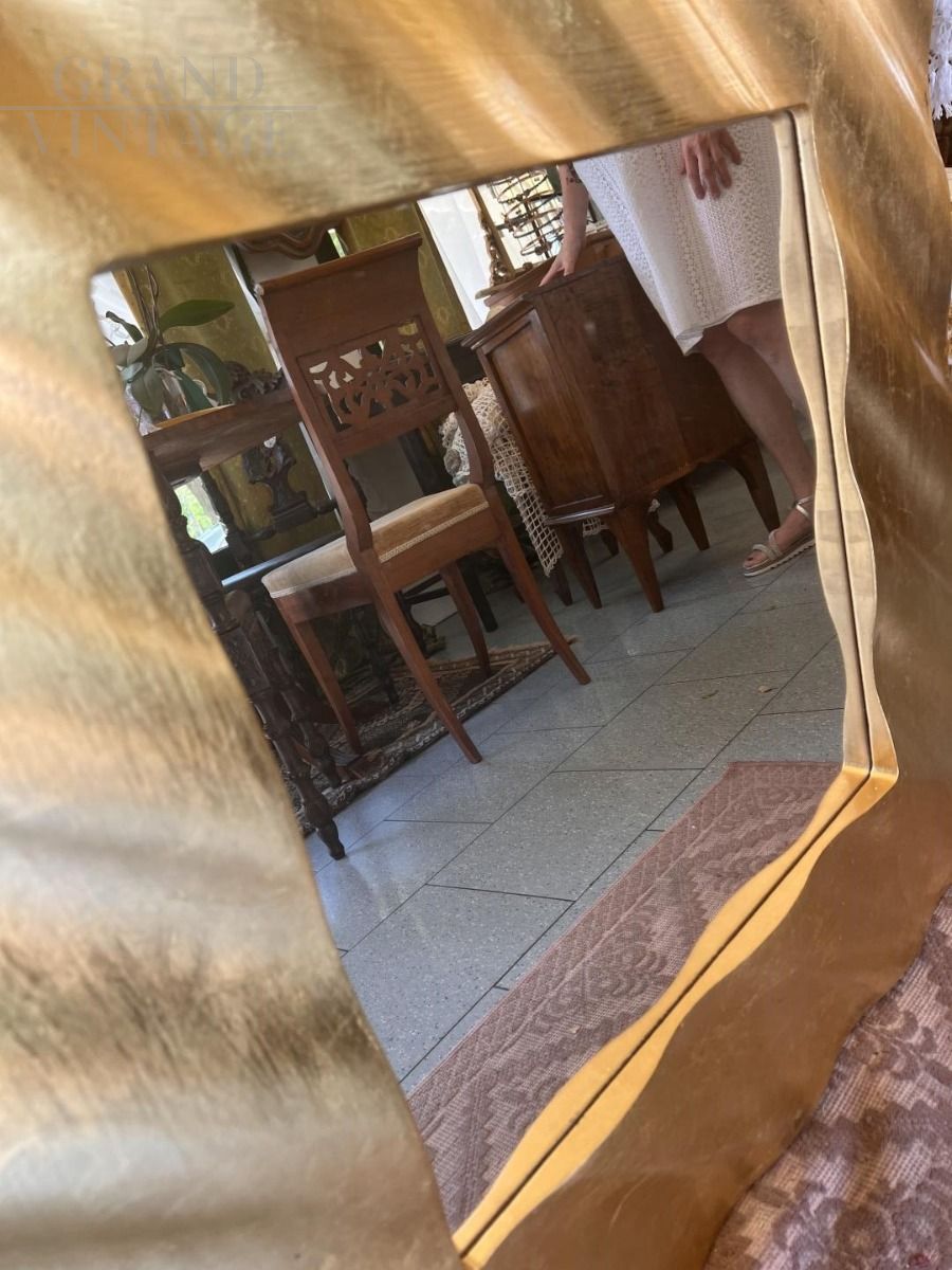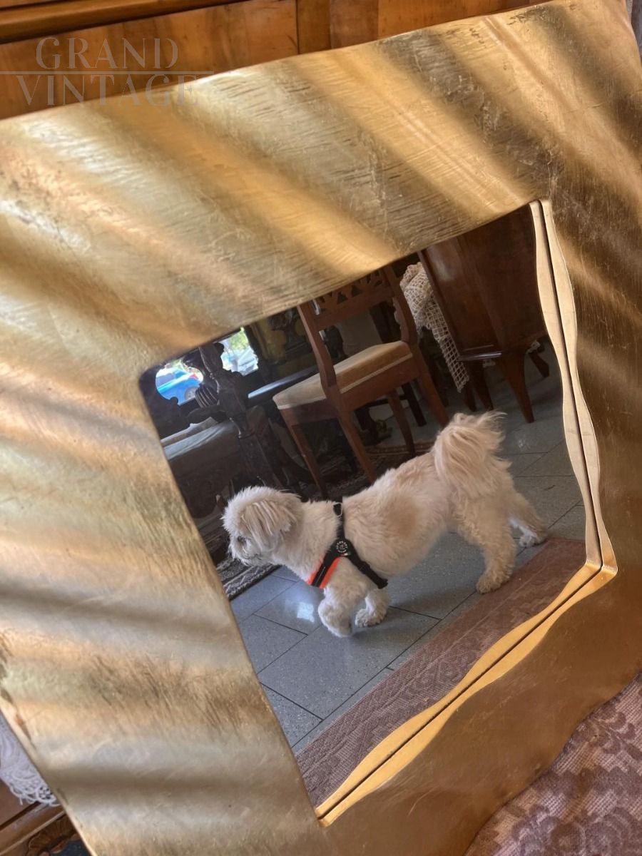 Specchio moderno quadrato con cornice in legno dorato elegantemente ondulato, di grandi dimensioni. Perfetto per giocare con gli stili delle vostre dimore.