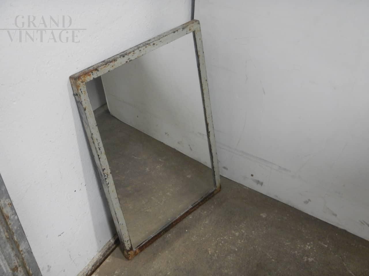 Specchio vintage con cornice in ferro trattata con vernice, stile industriale. In buone condizioni.