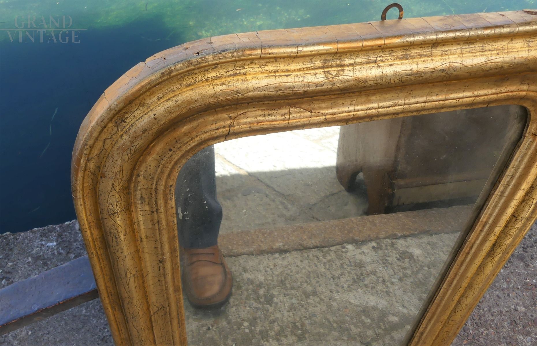 Specchio antico dell'800 in legno decorato da foglia d'oro, conserva ancora il suo vetro originale.