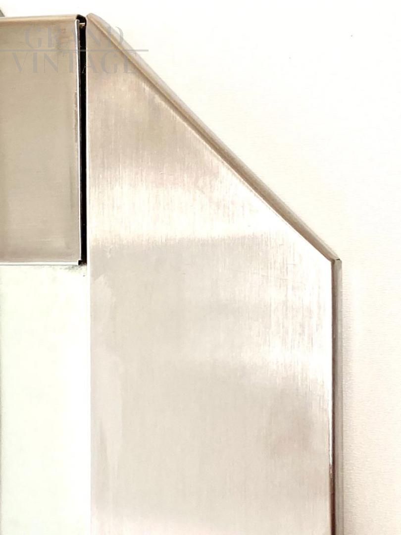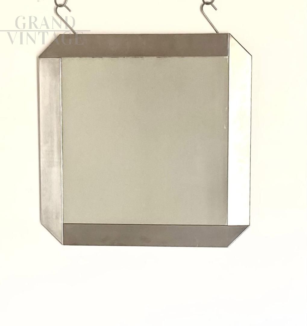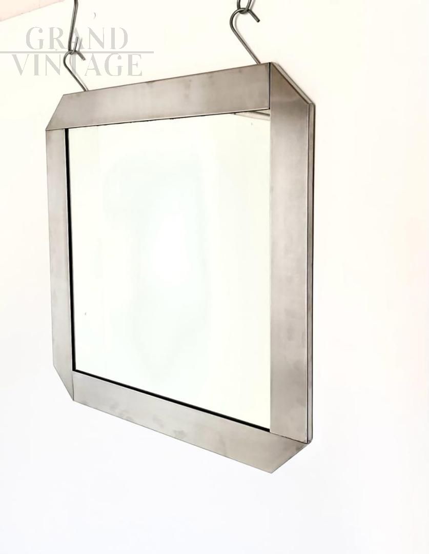 Specchio design Valenti quadrato in acciaio spazzolato, anni '70