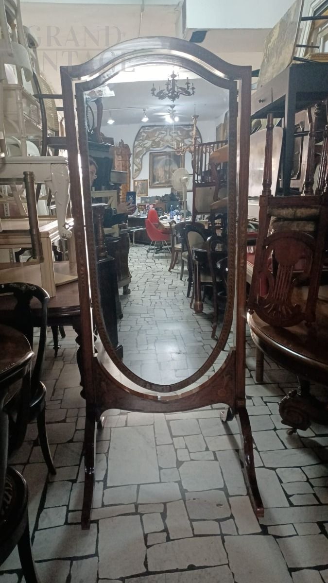 Specchio da terra Edoardiano Maple&Co. dipinto a mano, fine '800