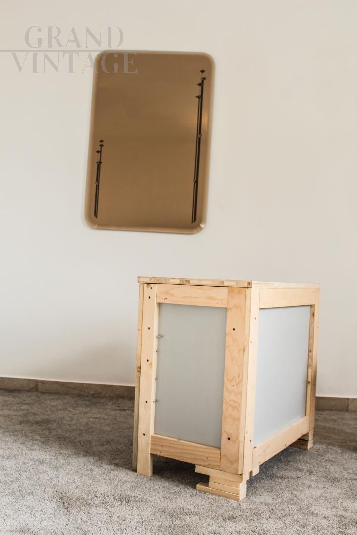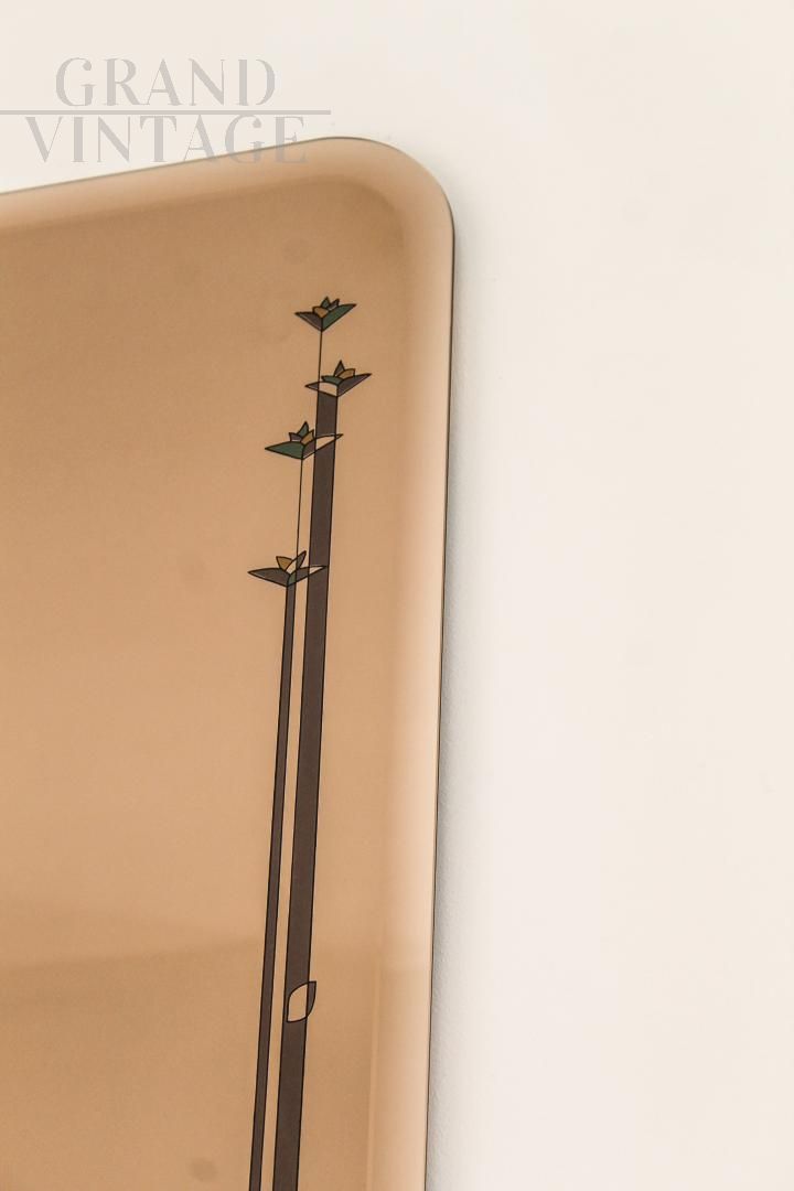 Specchio in vetro fumé anni '50 con decori liberty