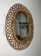 Specchio vintage in vimini intrecciato a raggiera, design di Franco Albini per Bonacina.