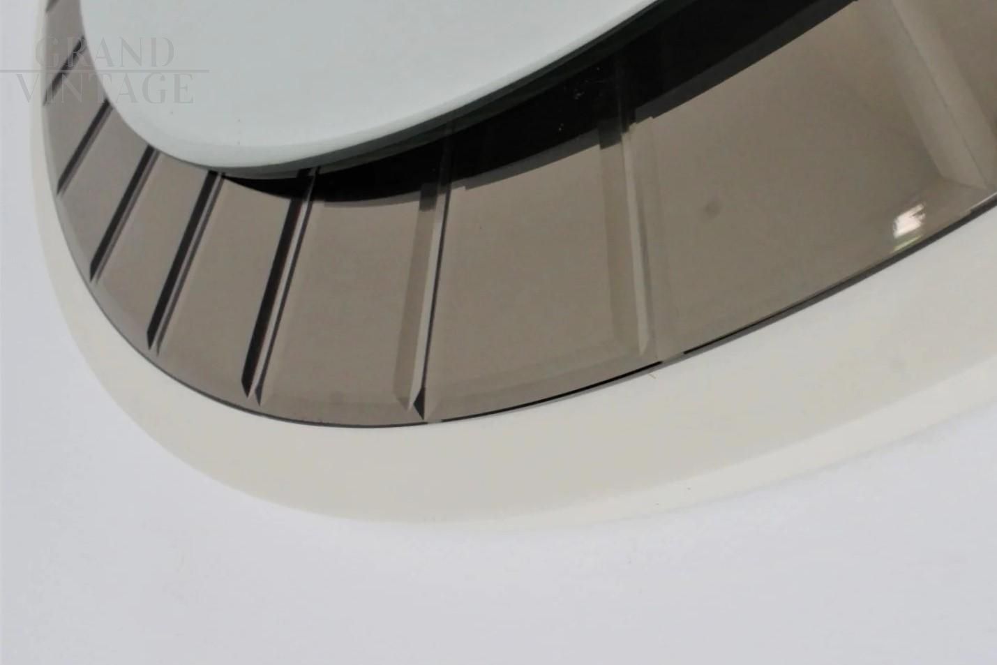 Specchio mid-century rotondo con cornice in vetro fumé molato, Italia anni '50