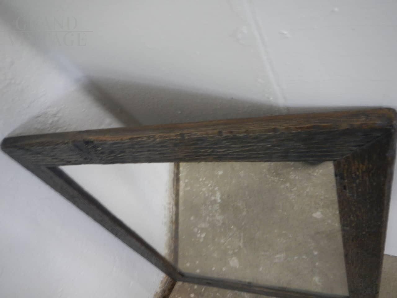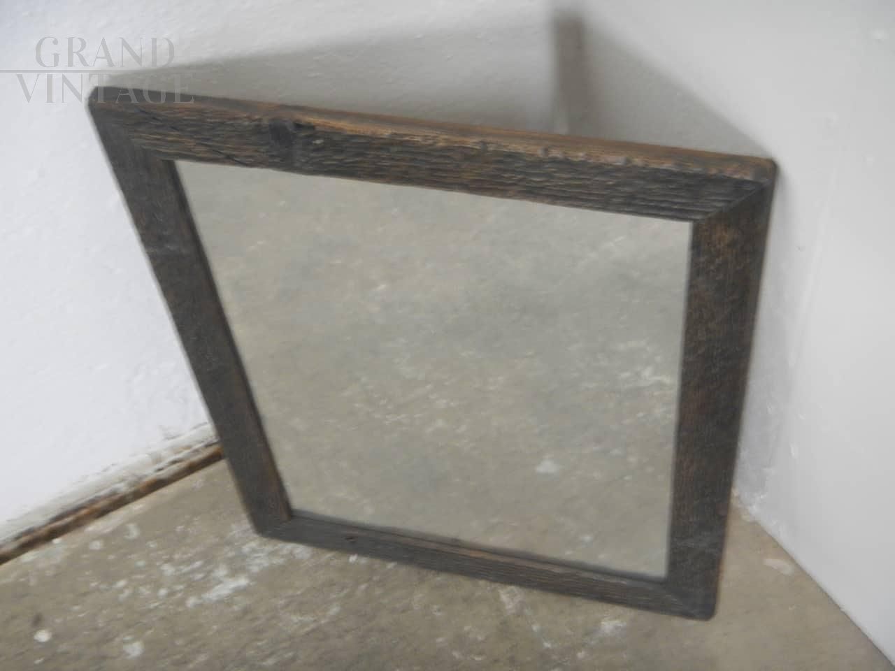 Specchio vintage con cornice artigianale in legno di abete lavorato in stile rustico, Italia anni '80.