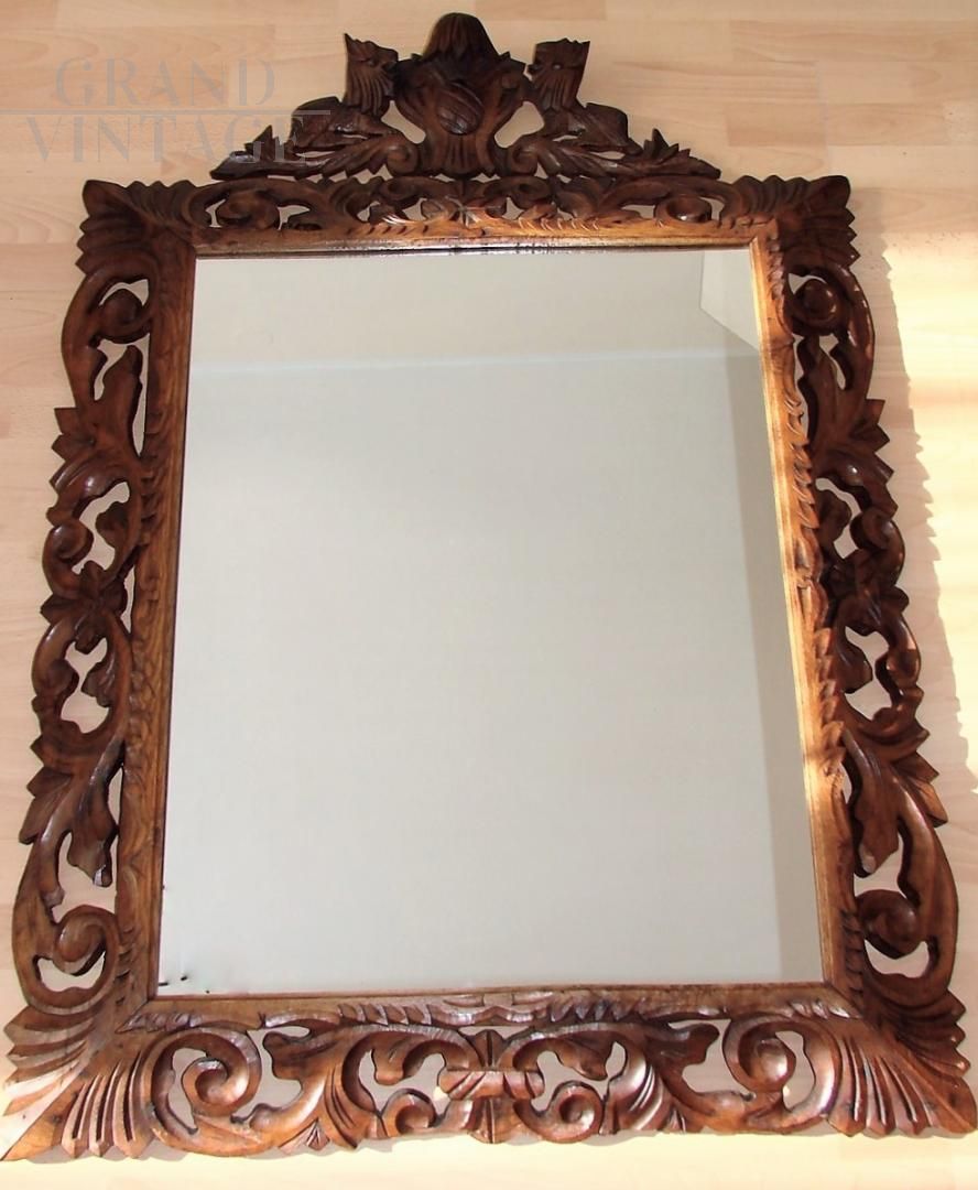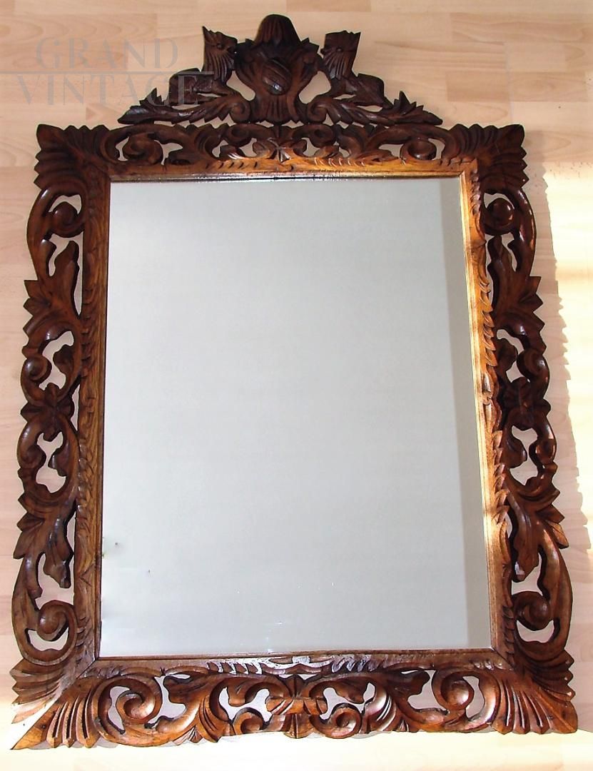 Bellissimo specchio vintage anni '40 in una cornice di legno finemente scolpito.