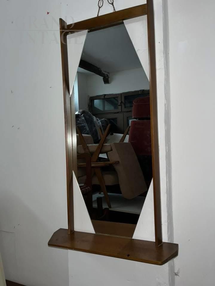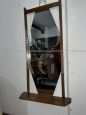 Specchio vintage in legno teak con ripiano, altezza 90 cm, larghezza 50 cm, profondità 13 cm.
