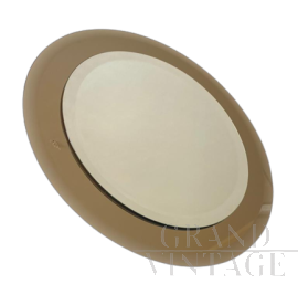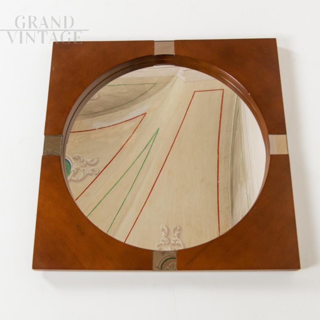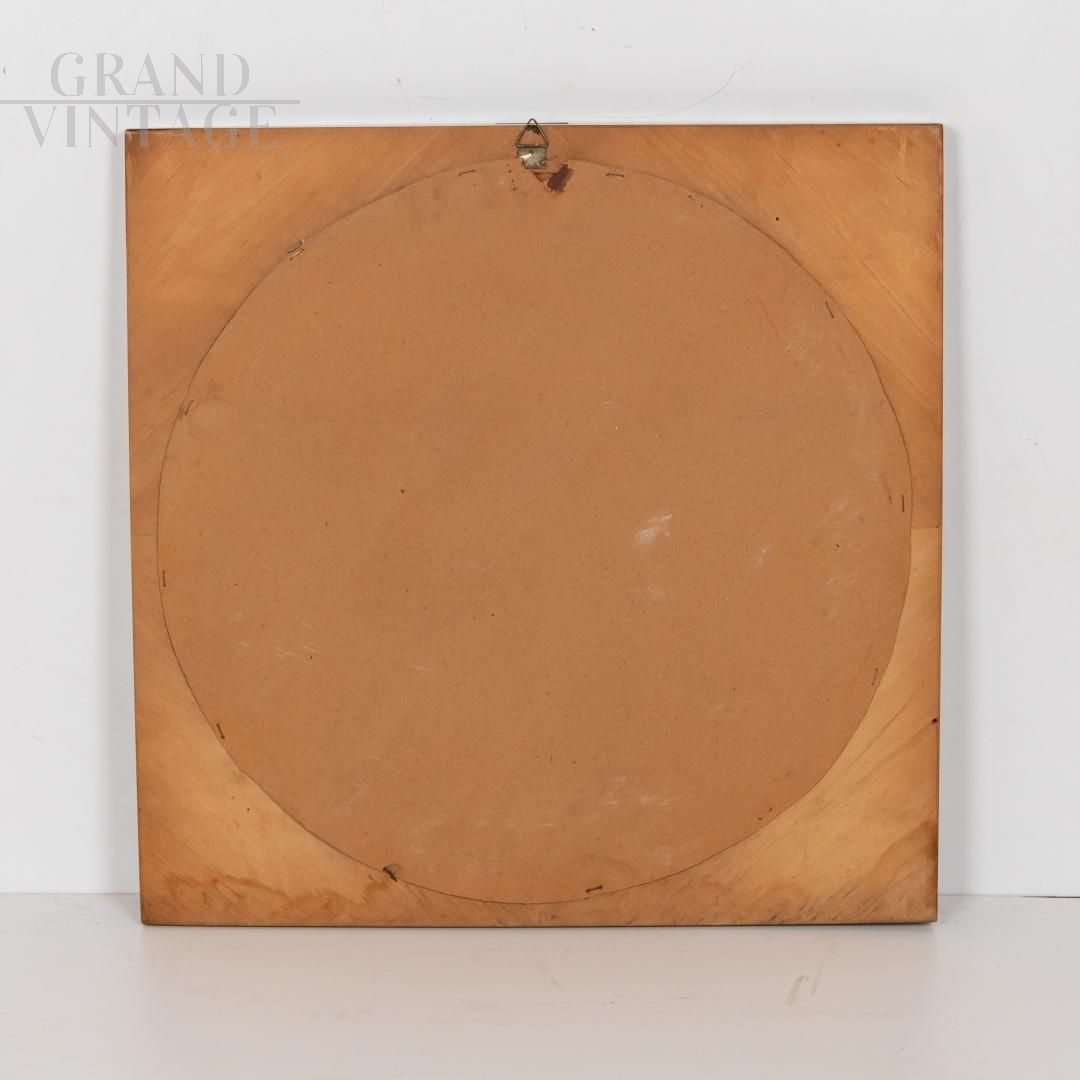 Specchio vintage rotondo in cornice quadrata, anni '70