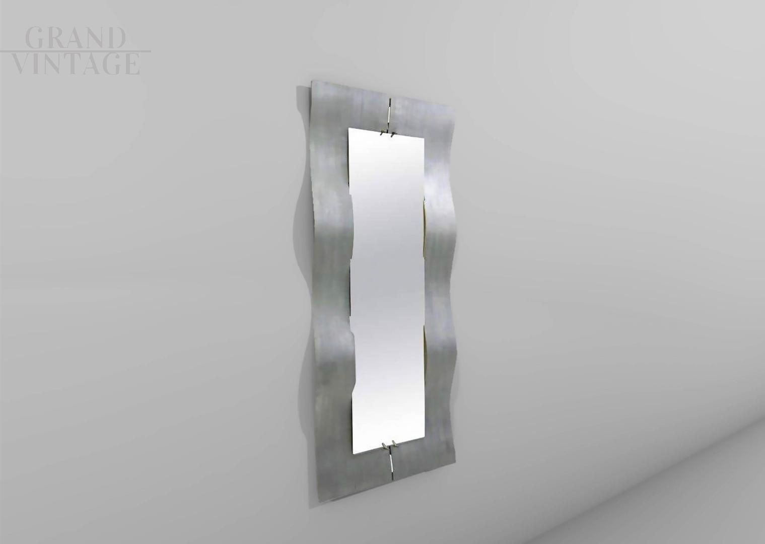 Specchio Wave di Lorenzo Burchiellaro in alluminio inciso, anni '70