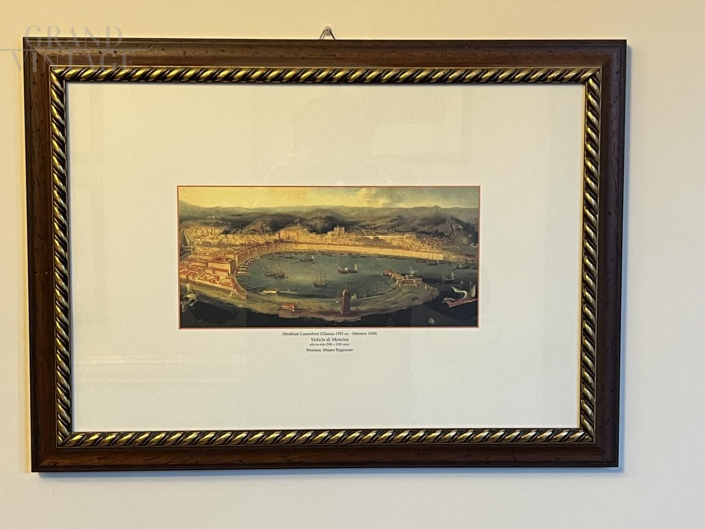 Stampa a colori raffigurante la pesca del pesce spada nello stretto di Messina secondo un dipinto realizzato nel XVII secolo dal pittore olandese Abraham Casembrot ed oggi conservato al Museo Nazionale della Certosa di San Martino di Napoli. La stampa è incorniciata e in ottime condizioni.