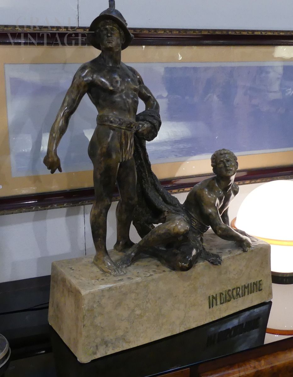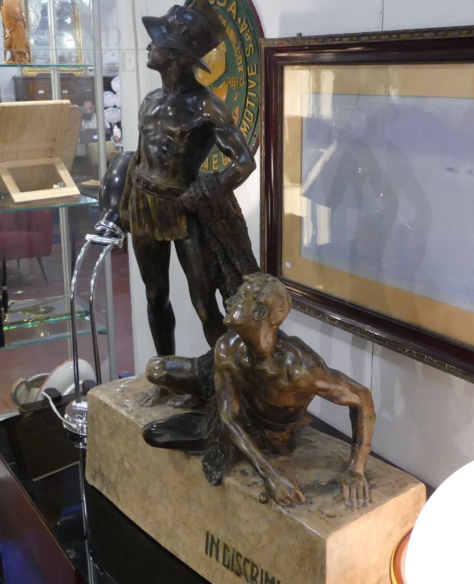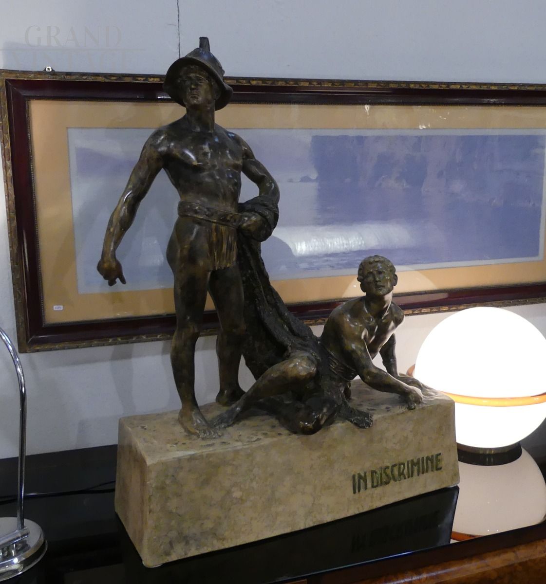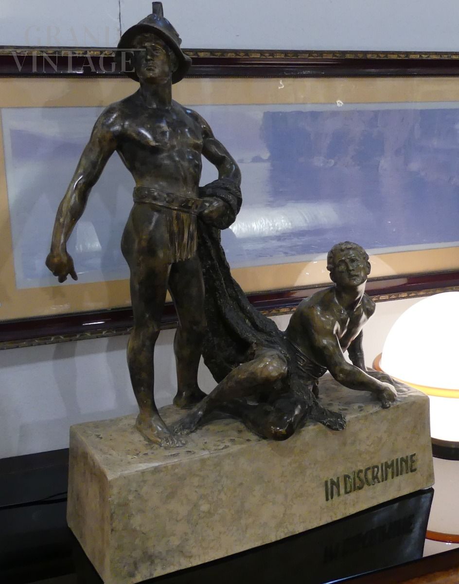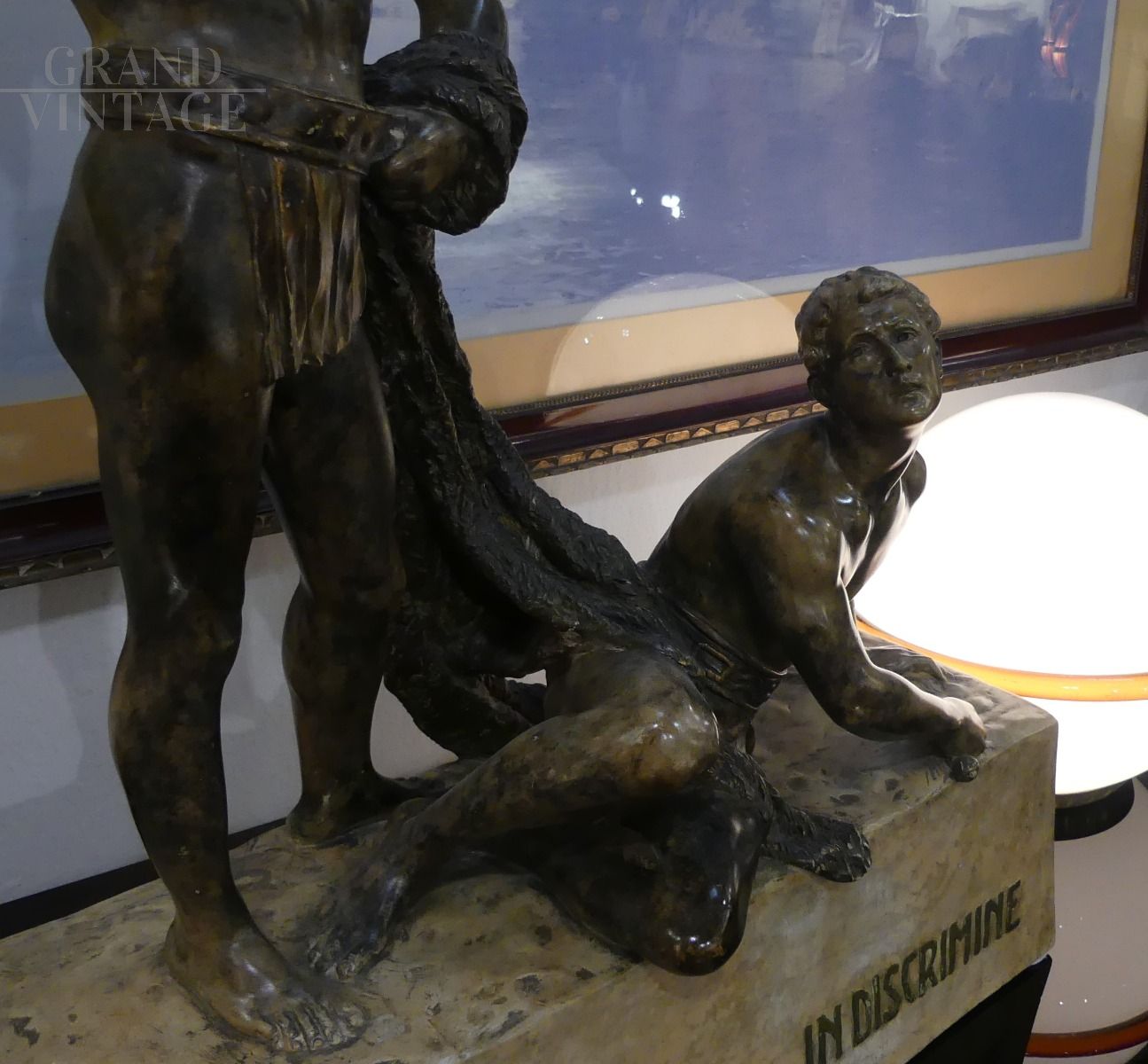 Scultura Goldscheider In Discrimine in terracotta dipinta in finto bronzo dei primi anni del XX secolo, realizzata tra il 1918 e il 1921 su modello Harinoff, di cui presenta la firma sulla base.