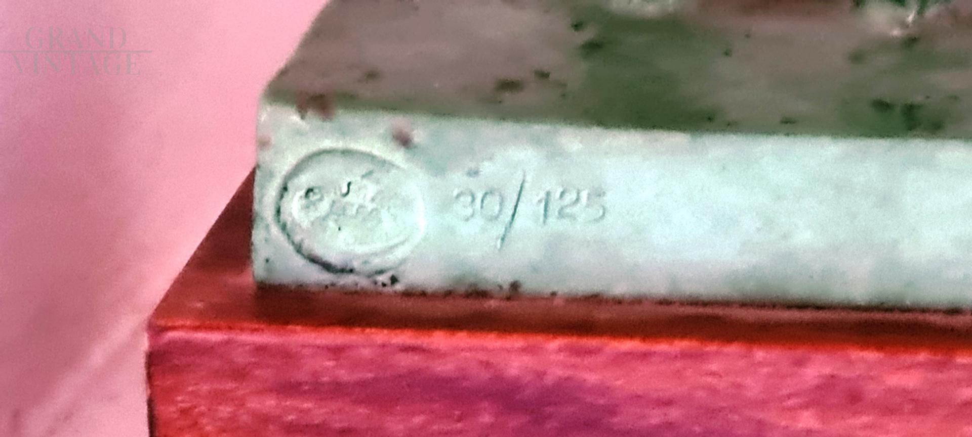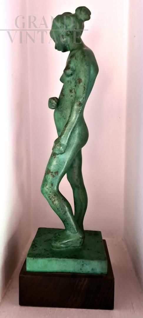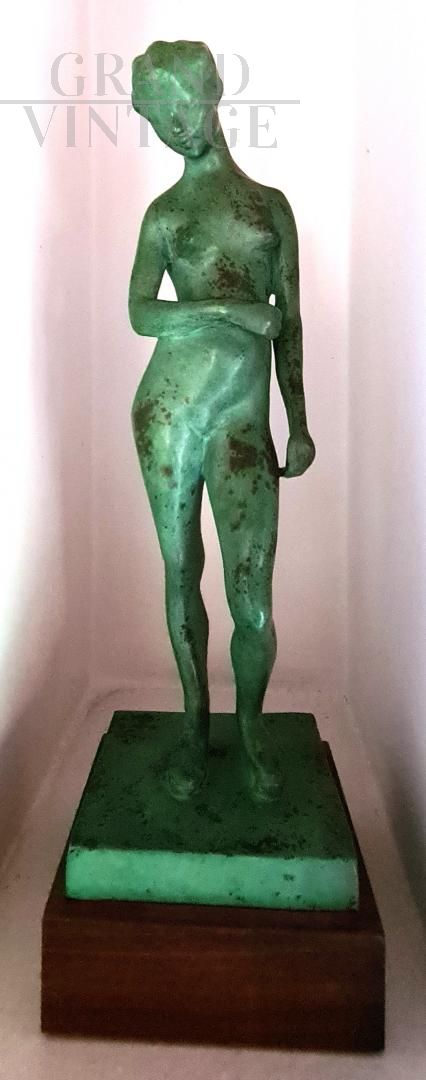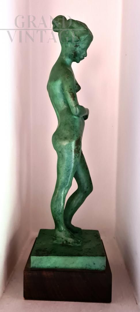 Statua in bronzo con piedistallo in legno raffigurante nudo di donna, realizzata con la tecnica della cera persa, presenta il marchio della fonderia artistica Venturi Arte di Bologna e il numero di serie n.30/125.