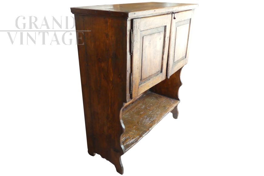 Stipetto credenzina Lombarda antica della metà dell'800, costruito in legno d'abete, mantenuta nella sua patina originale conservando il suo aspetto rustico.