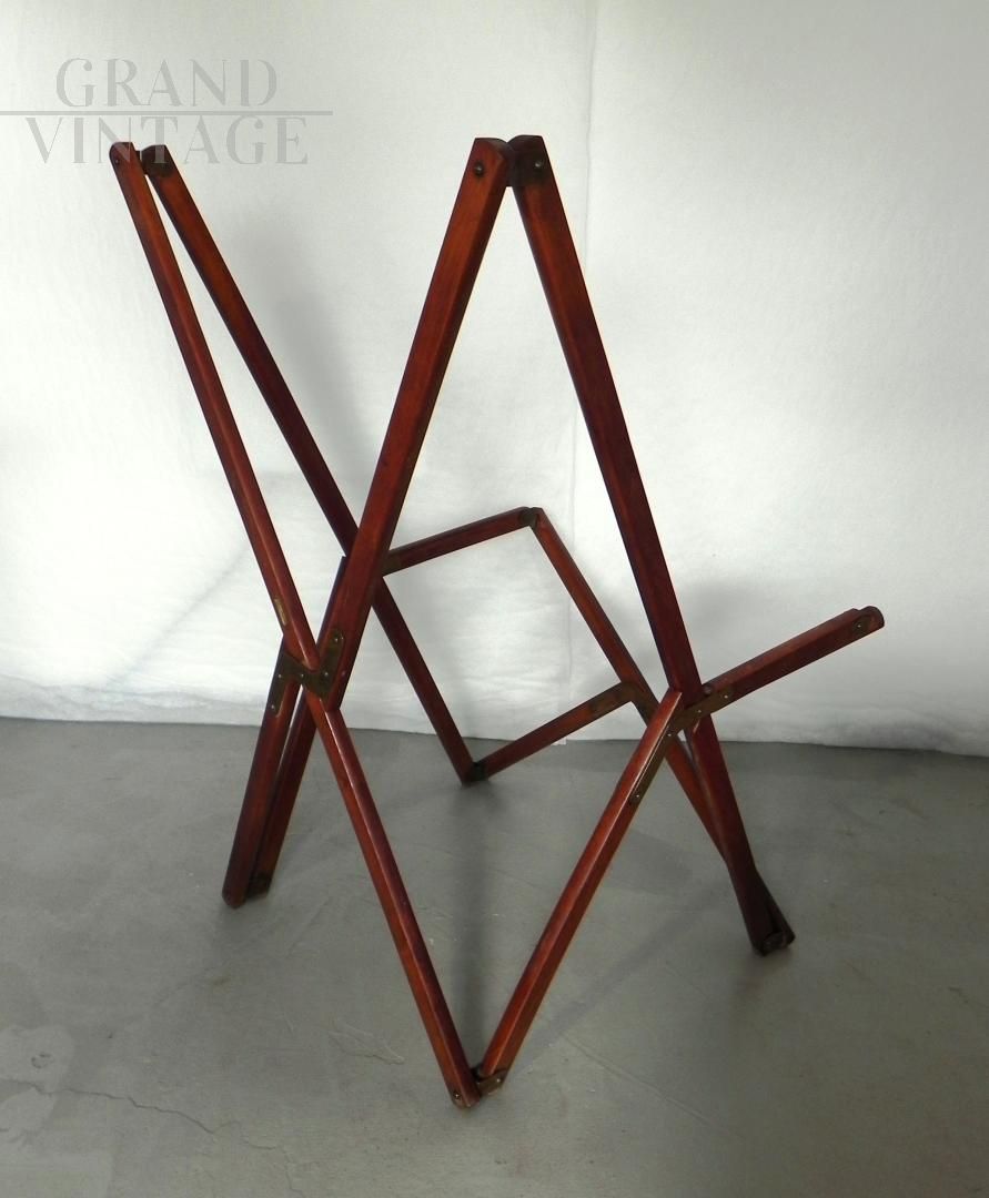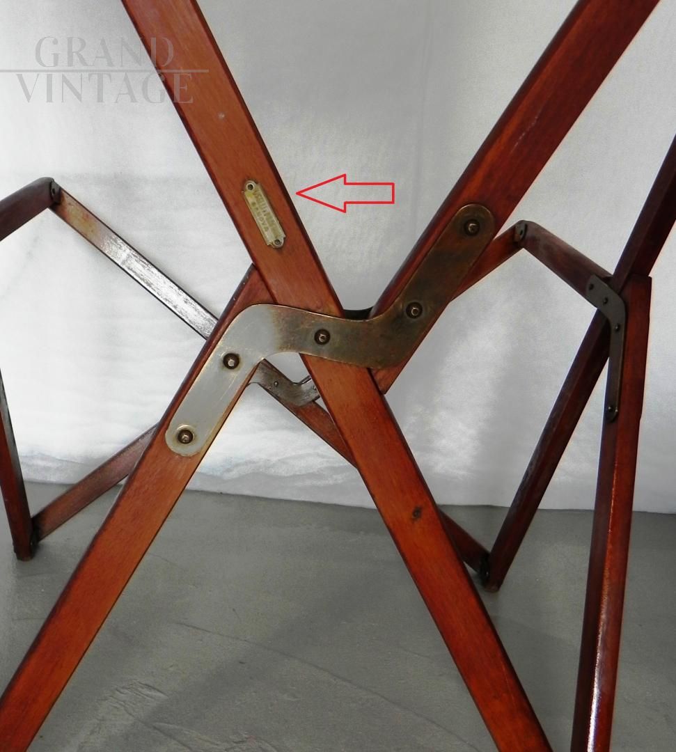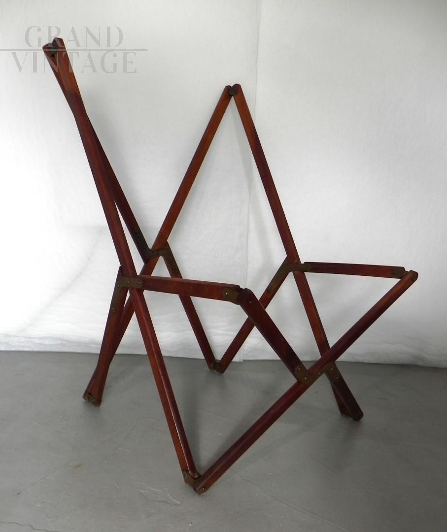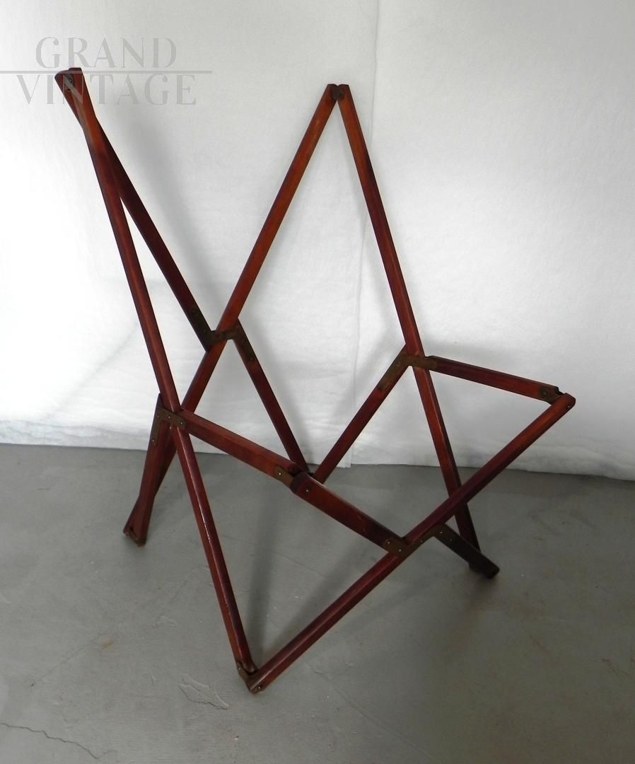 Struttura per poltroncina sedia richiudibile Tripolina sun deck proveniente da un transatlantico, marchiata Fuselli & Profumo, Genova anni '50. La struttura è in legno teak, parti metalliche sono in ottone.