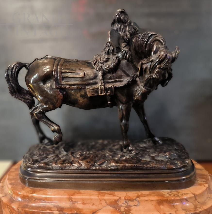 T. Gechter - Scultura di cavallo da tiro in bronzo dell'800