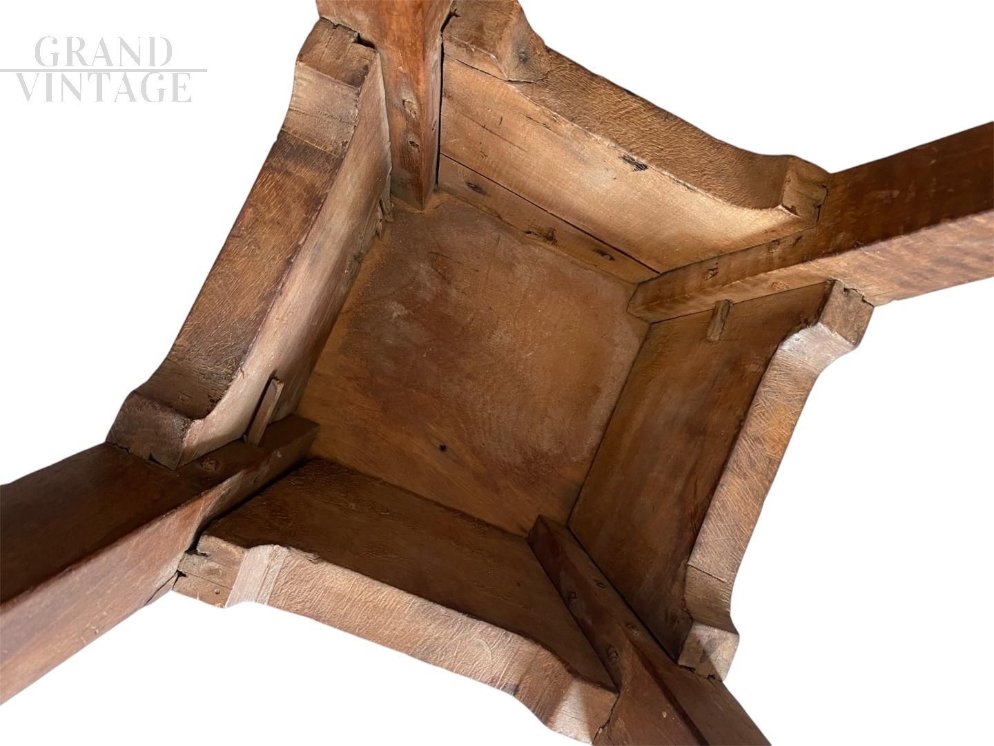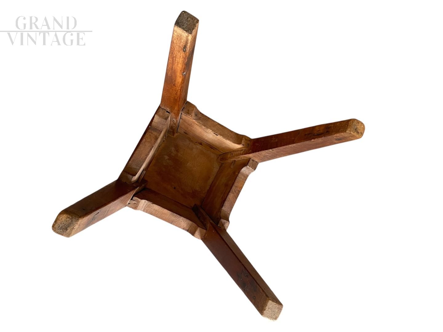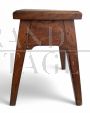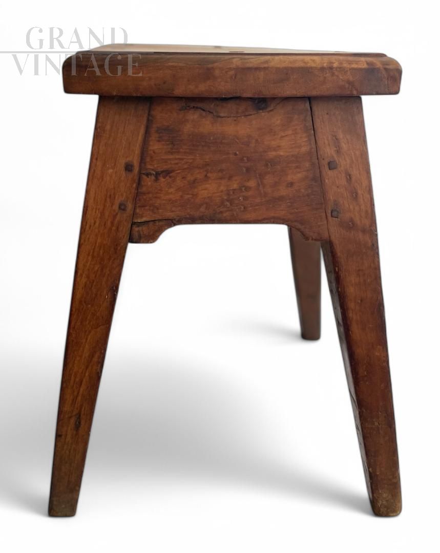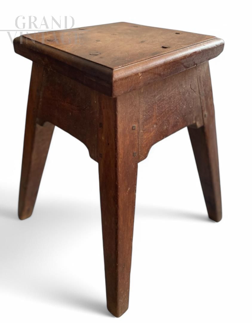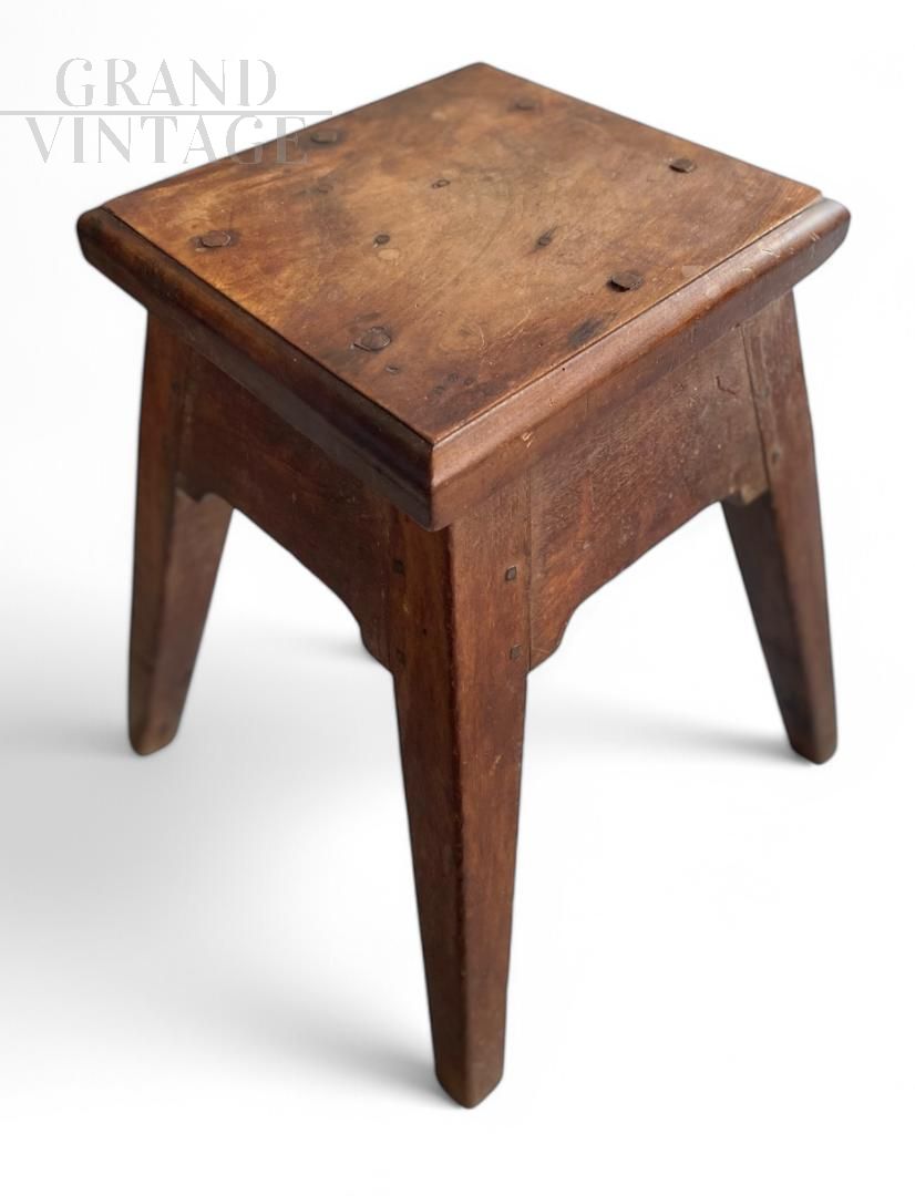 Tabouret de ferme avec repose pied et assise carrée. Véritable pièce ancienne esprit campagne. Tabouret très bien conservé. H 48 L 30 L 29