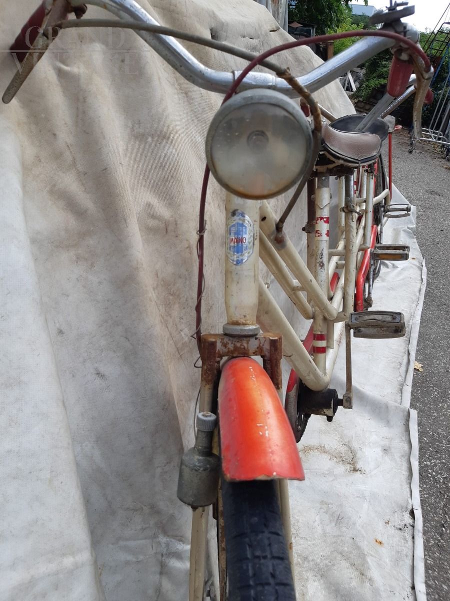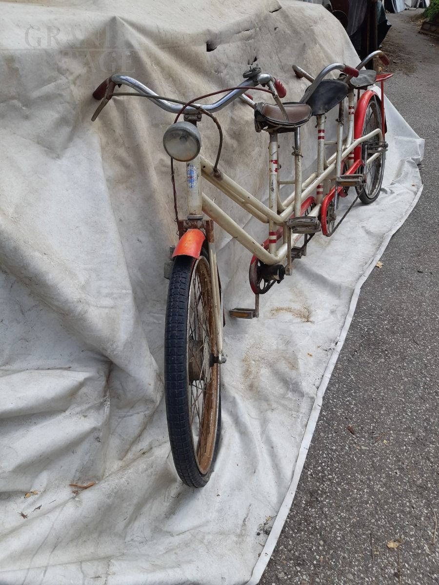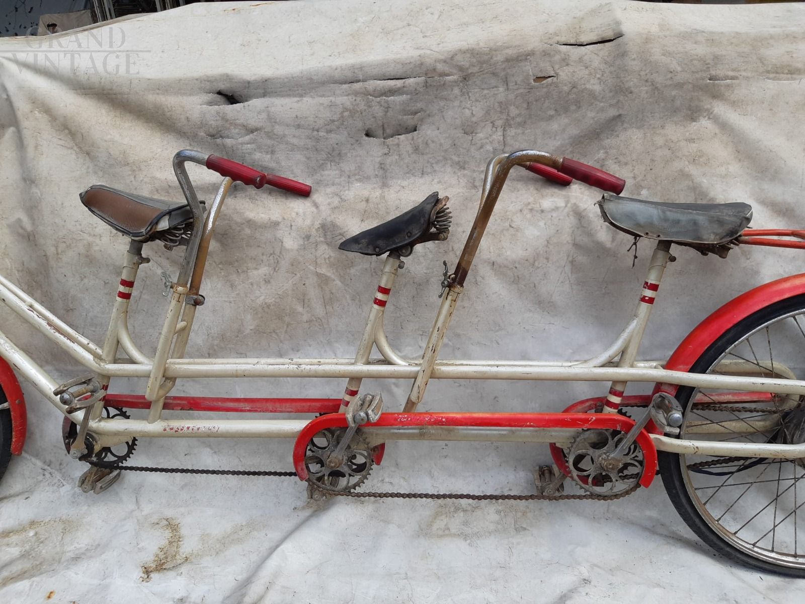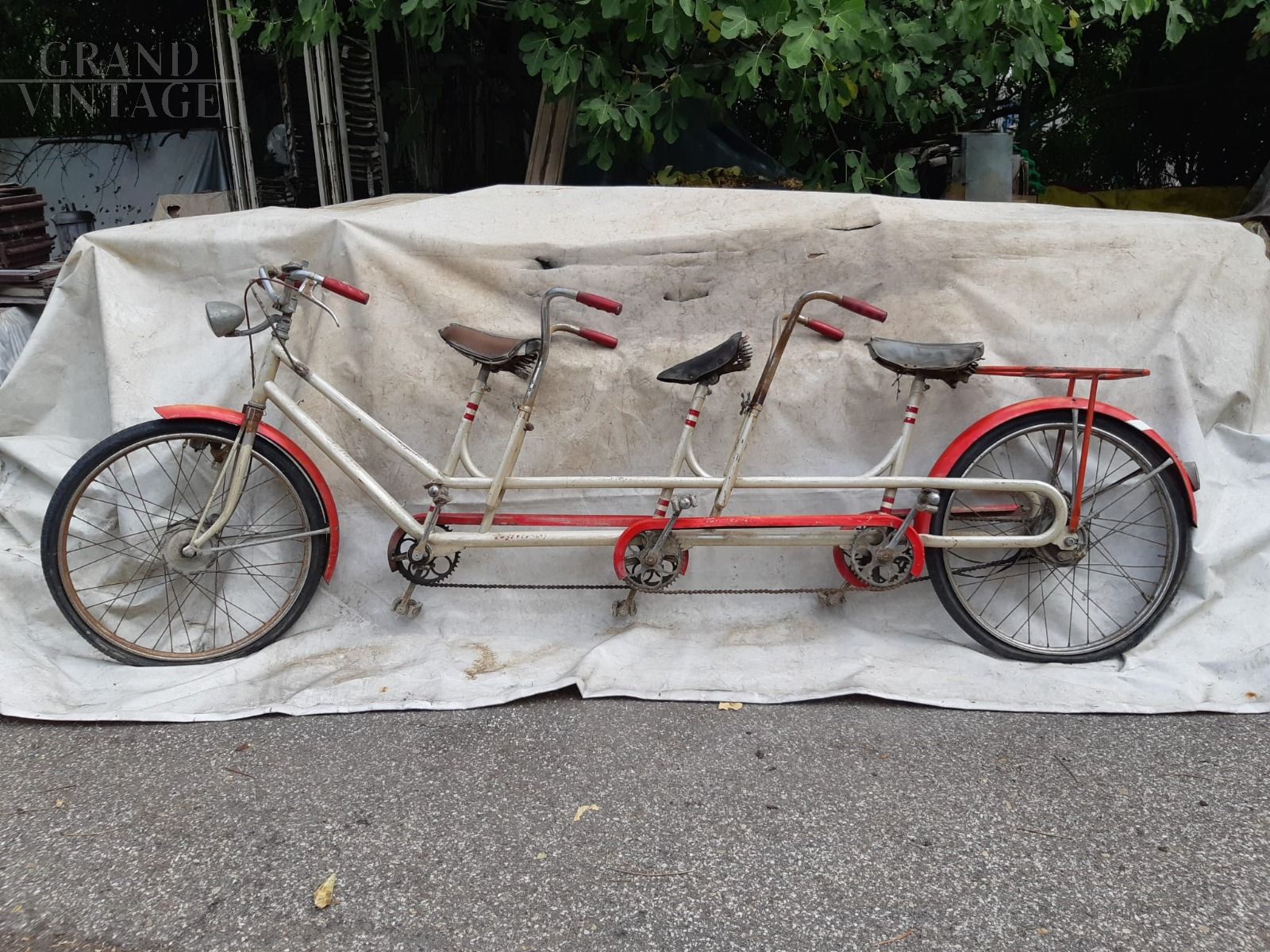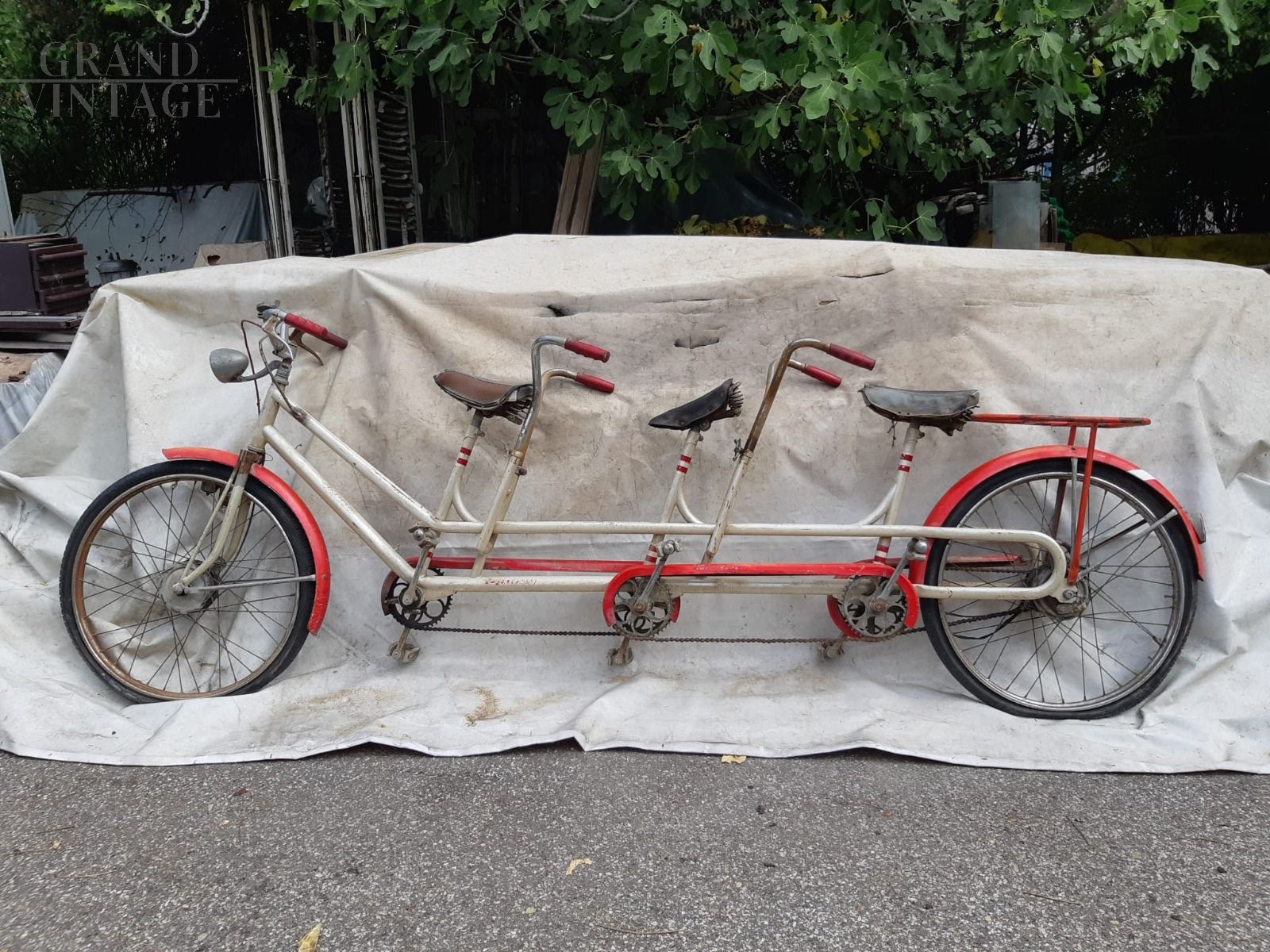 Tandem vintage a 3 posti dell'azienda Maino, funzionante, in buone condizioni, lasciato nel suo stato originale, i sellini sono da cambiare.