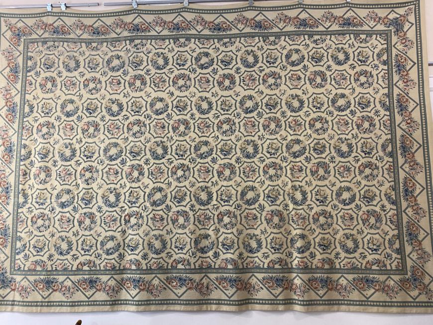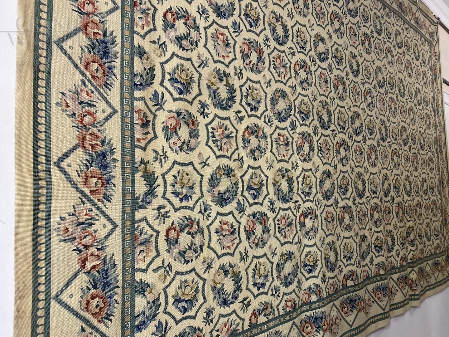 Grande tappeto in piccolo punto - needle point in cotone con rose, di recente manifattura Cinese.