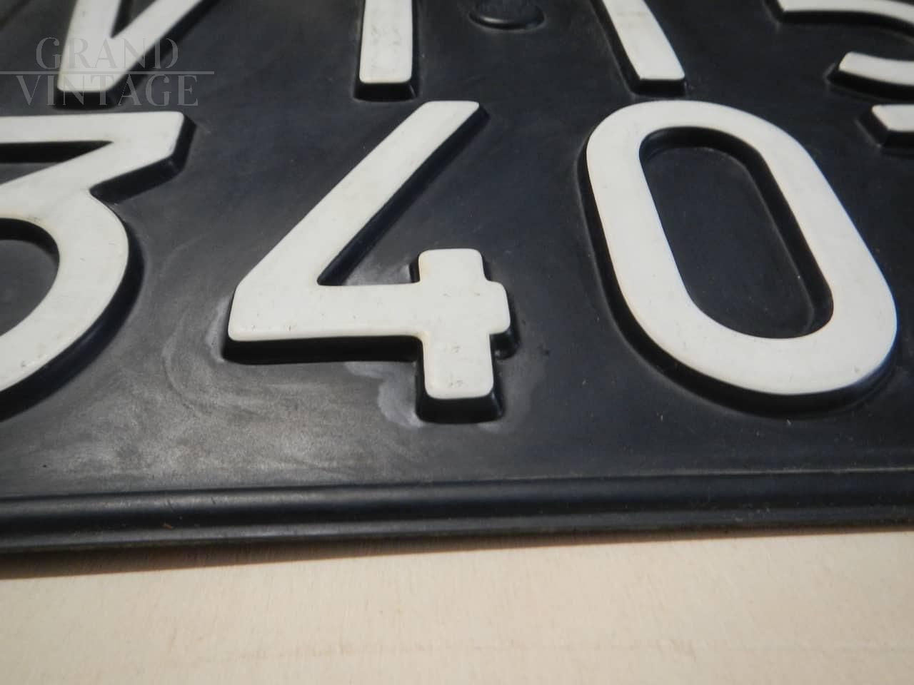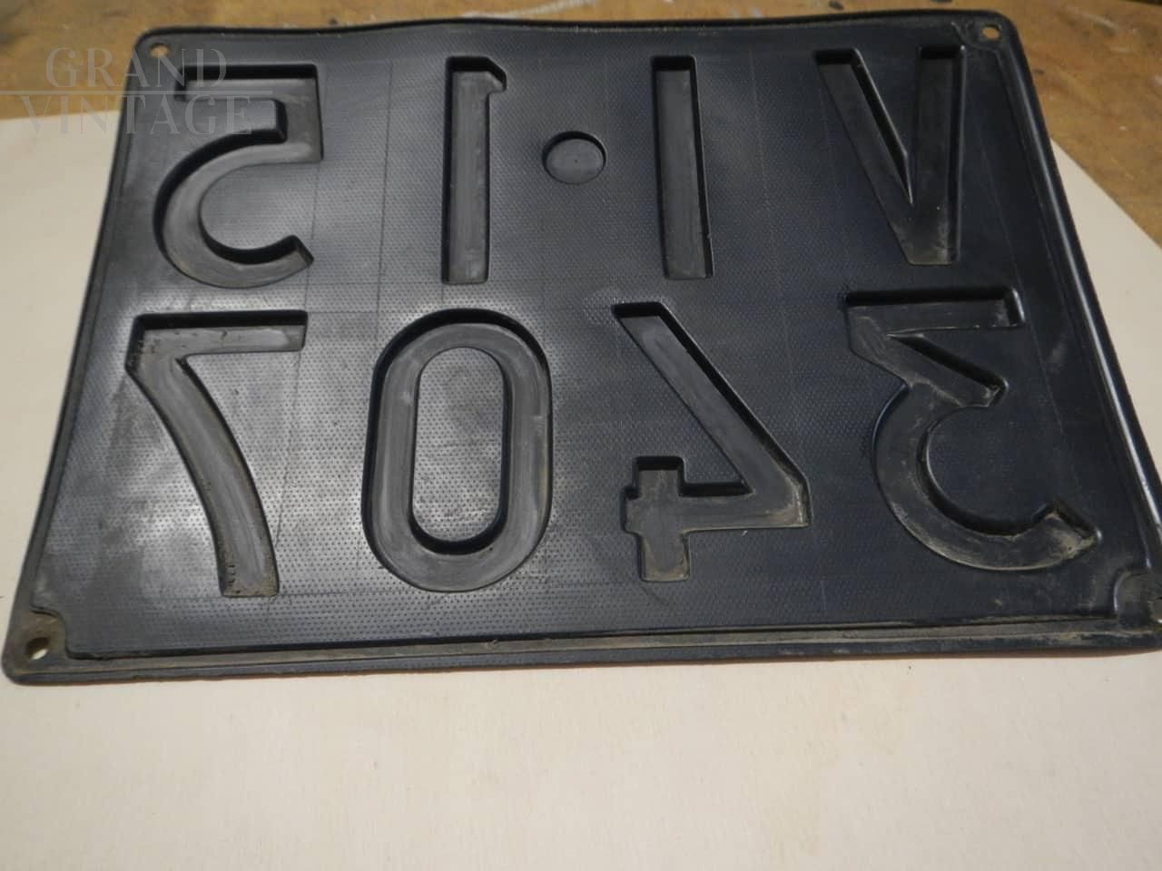 Targa anteriore di automobile vintage anni '60 in plastica Vicenza VI15. Compare il simbolo della Repubblica Italiana, e cioè una stella a 5 punte all’interno di una ghirlanda e con al centro le lettere RI.