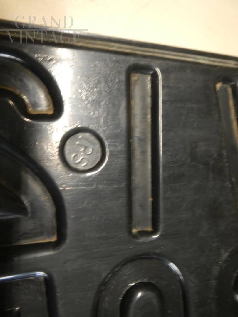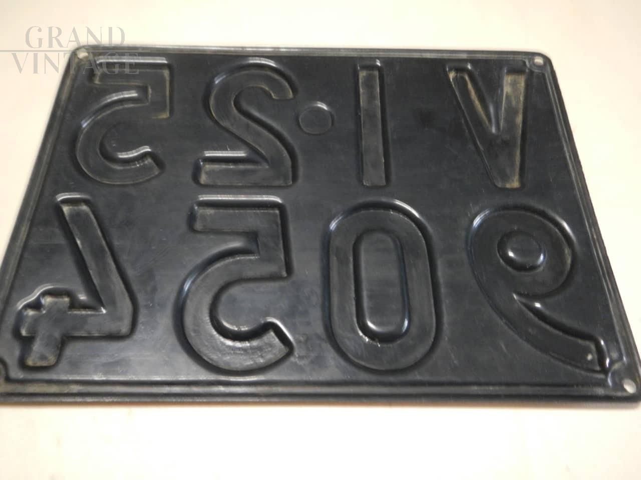Targa anteriore di automobile vintage anni '60 in plastica Vicenza VI25. Compare il simbolo della Repubblica Italiana, e cioè una stella a 5 punte all’interno di una ghirlanda e con al centro le lettere RI.