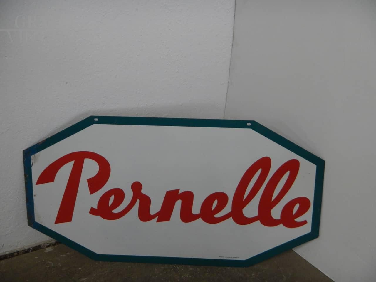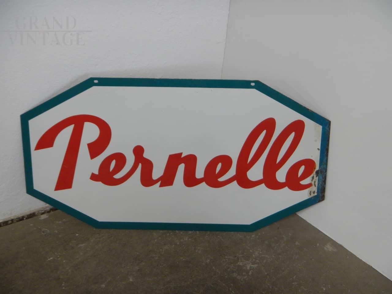 Targa insegna pubblicitaria vintage francese con marchio lana Pernelle, bifacciale e provvista di fori per appenderla.