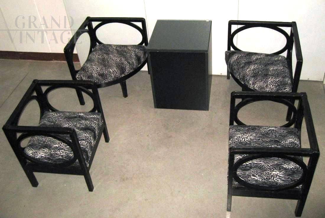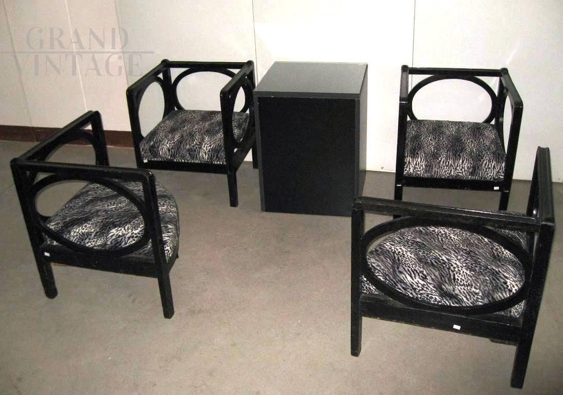 Tavolino a cubo degli anni '60 in legno laccato nero con piano in vetro.