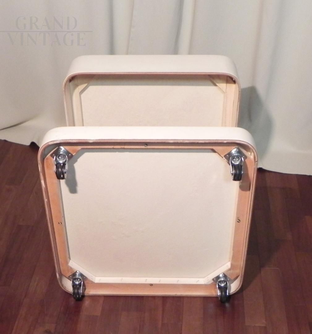 In buone condizioni, presenta i segni del tempo nella laccatura come da foto. Le rotelle sono state sostituite.