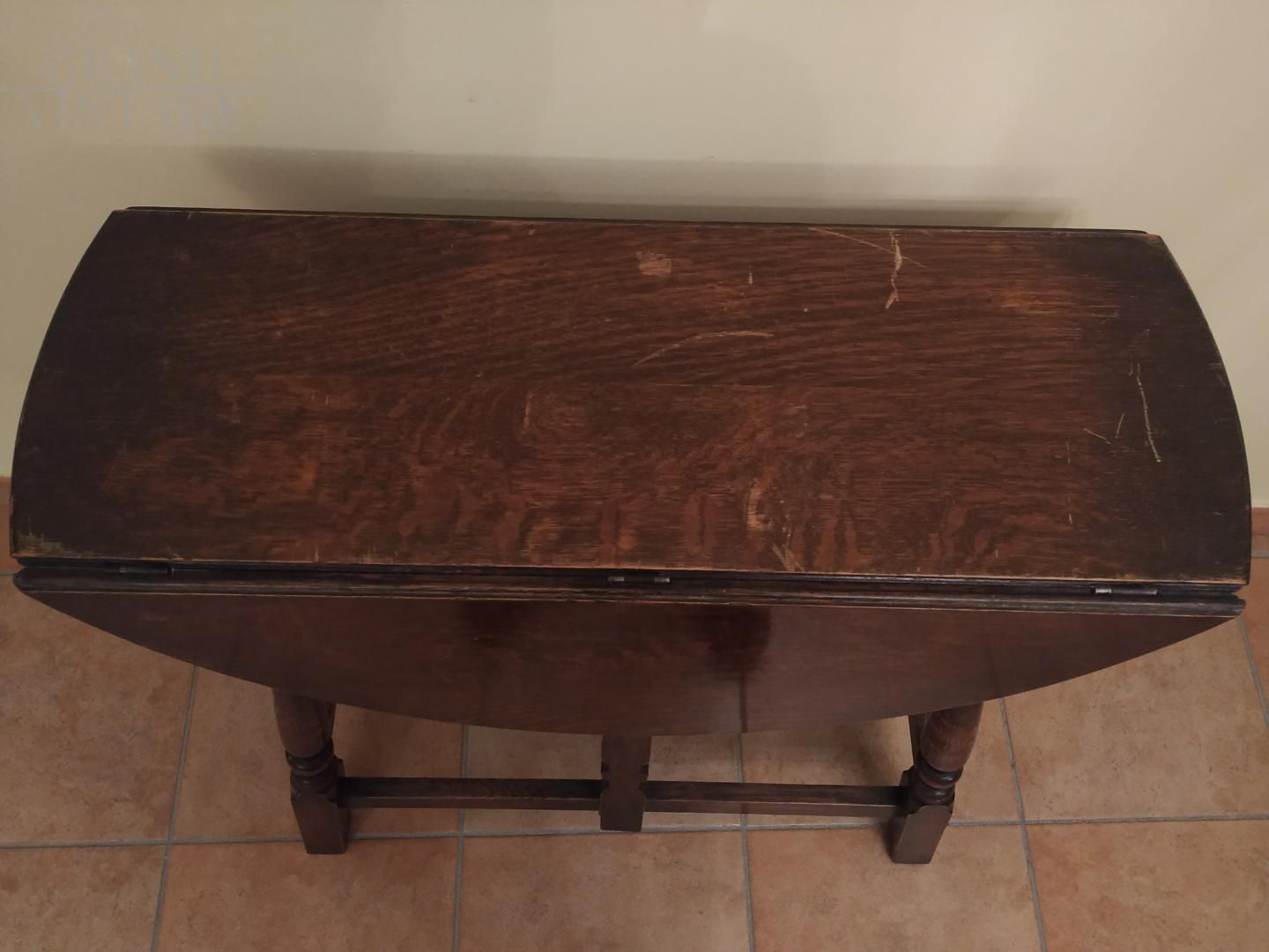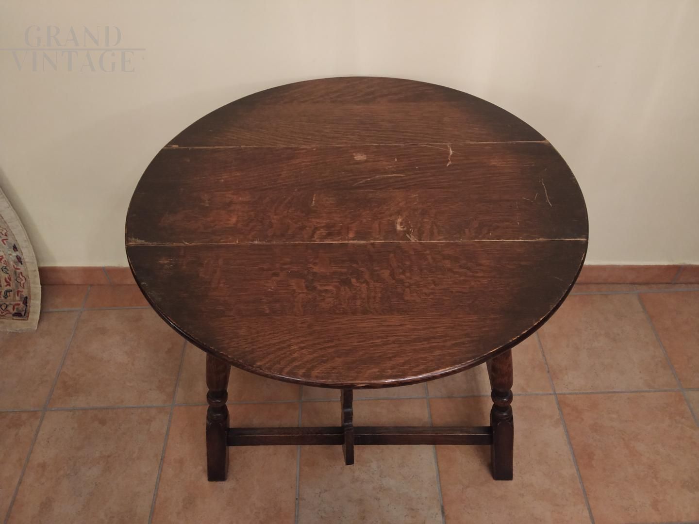 Tavolino antico a bandelle epoca Edoardo VII rovere massello