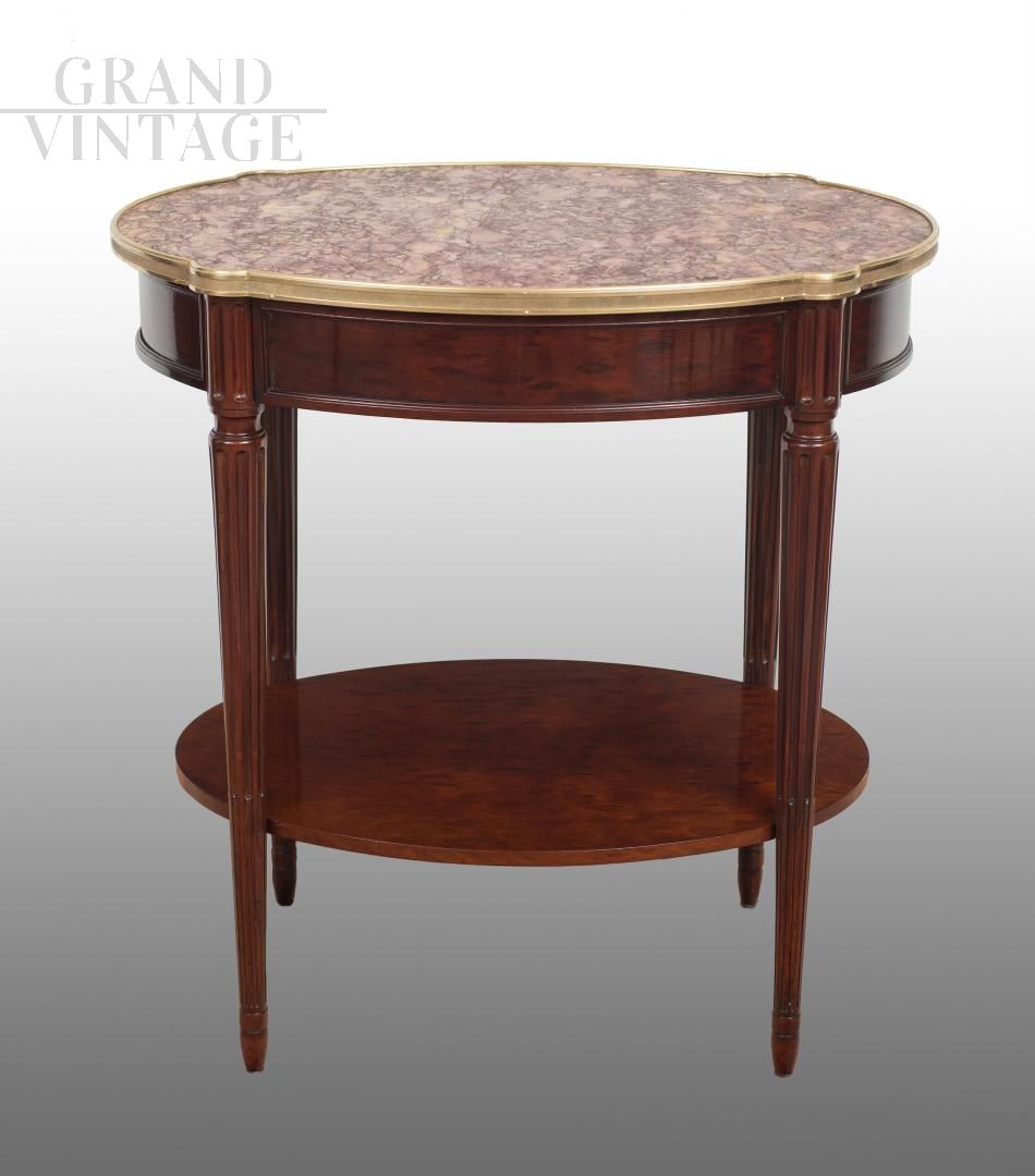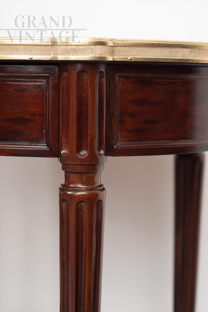 Tavolino antico Napoleone III in mogano con piano in marmo, Haentges Frères