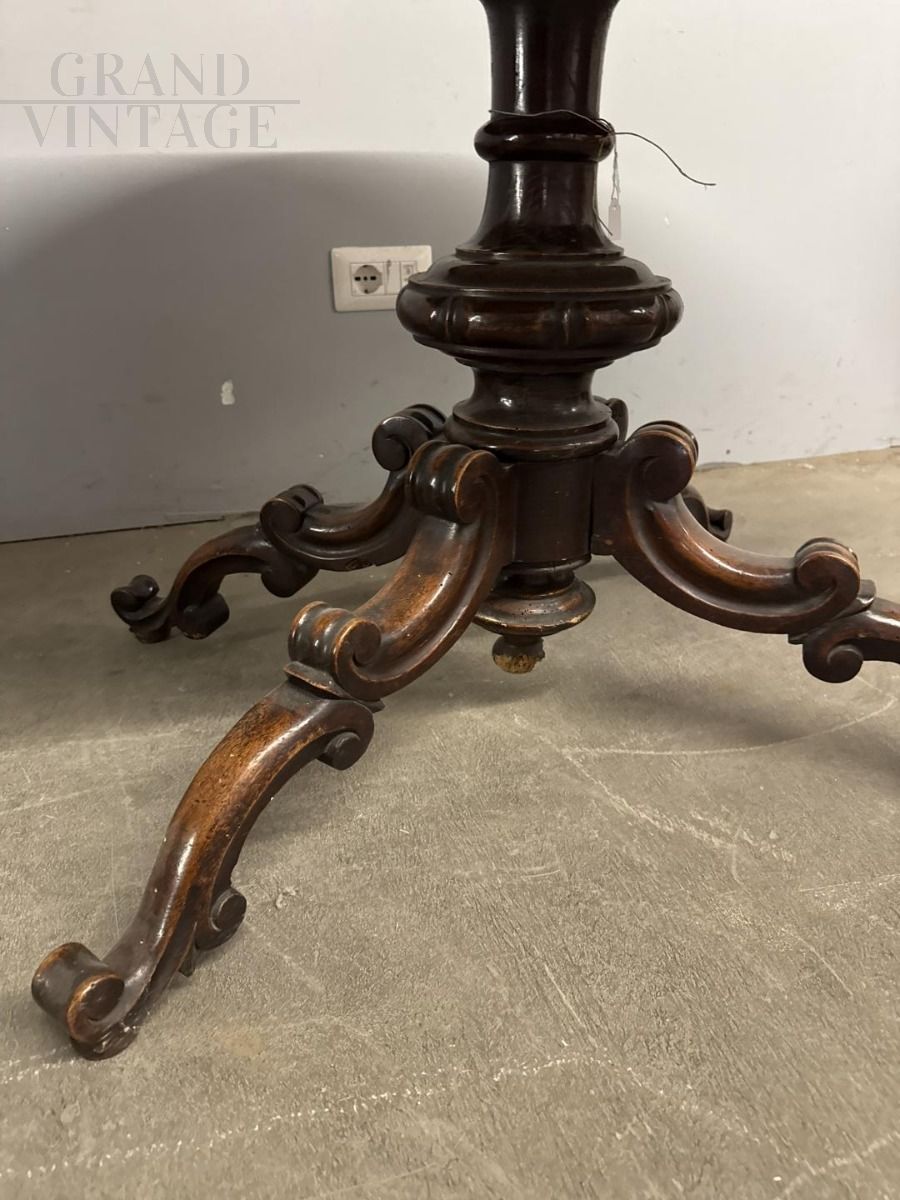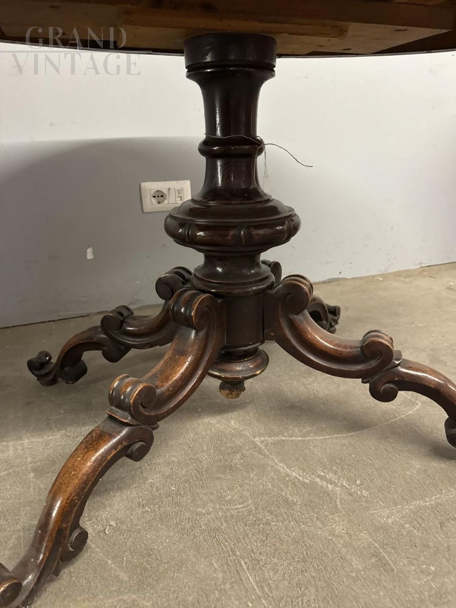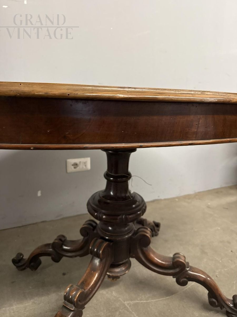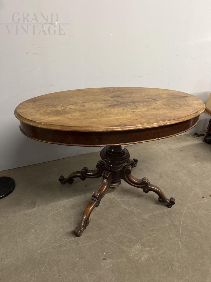 Tavolino antico ovale in noce massello di epoca Luigi Filippo