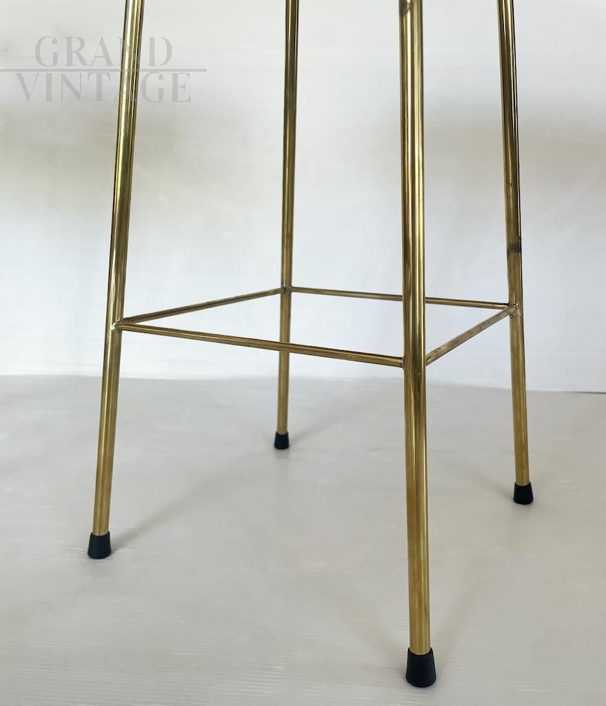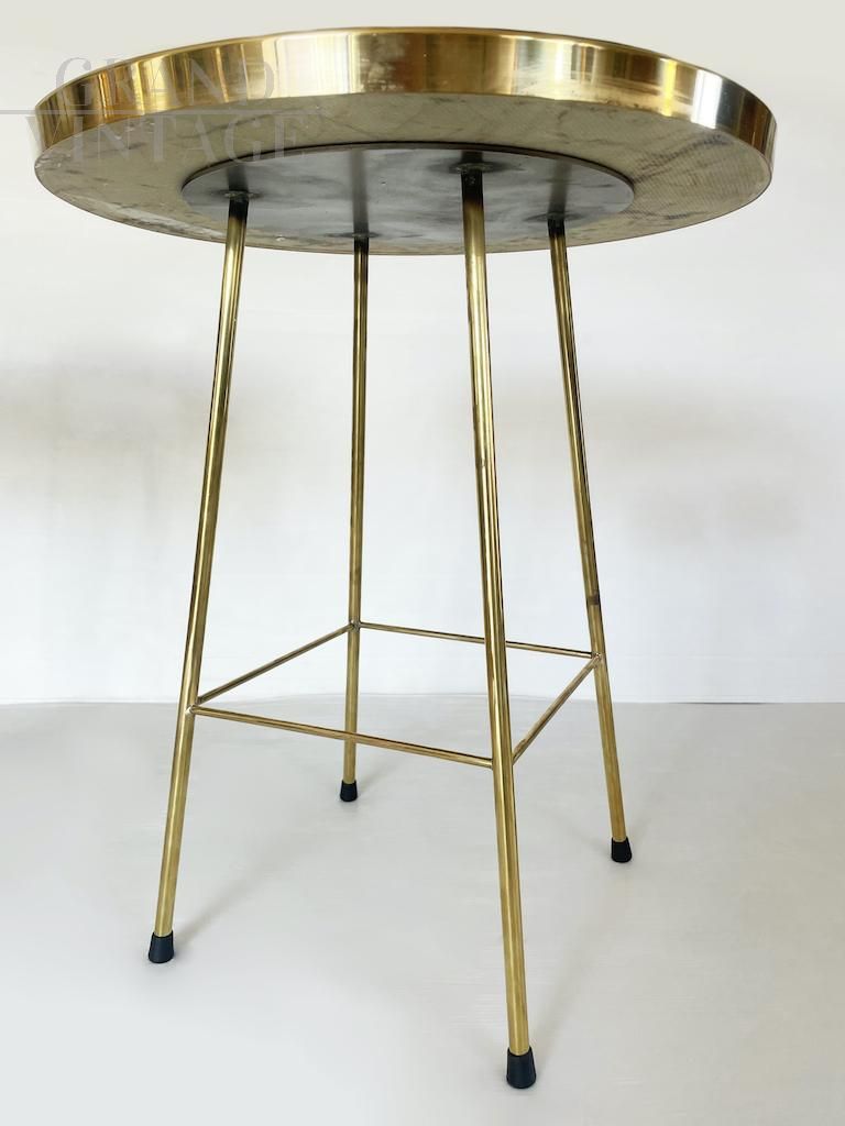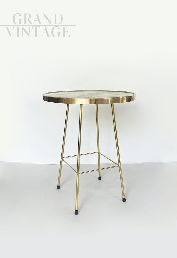 Tavolino vintage rotondo in ottone e marmo, 1970