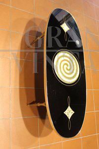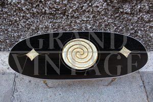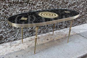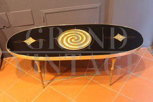 Tavolino da caffè ovale nero e oro, design Italiano anni '70